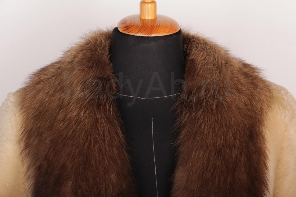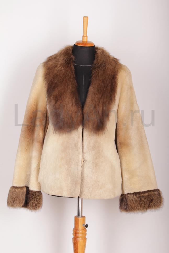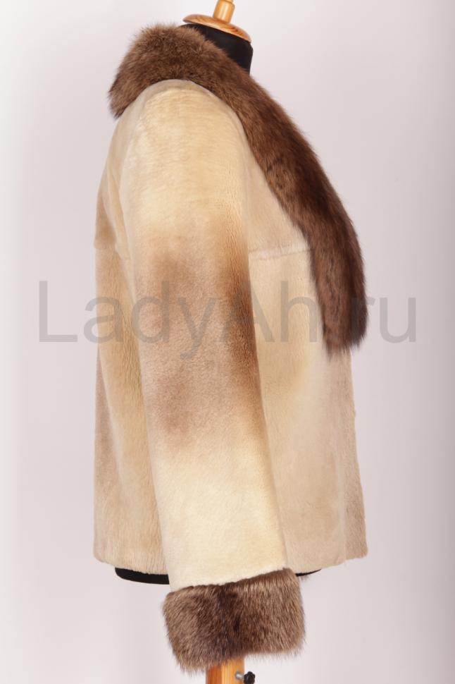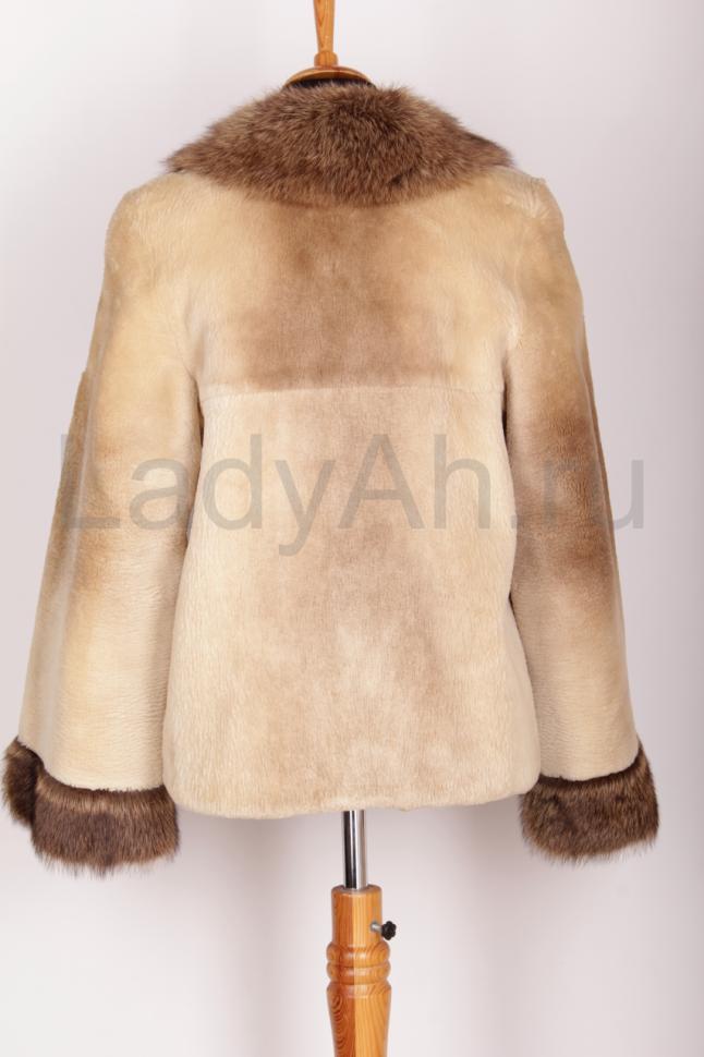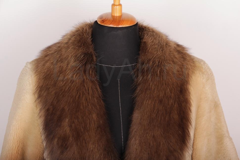 Короткий полушубок пиджачного кроя из настоящего стриженного бобра (не бобрик, не кролик), с воротником и отделкой на рукавах из енота ванильного цвета. Б/у, состояние хорошее.