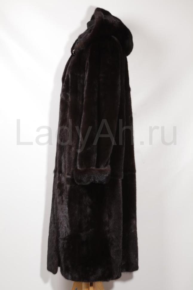 Норковая шуба практически прямого фасона, с капюшоном. Рукава с отворотами. Мех очень густой, плотный, набивной. Шуба смотрится дорого и статусно, завораживает переливами и зеркальным блеском меха. Универсальная, ноская и очень красивая вещь на все времена и на все случаи жизни.