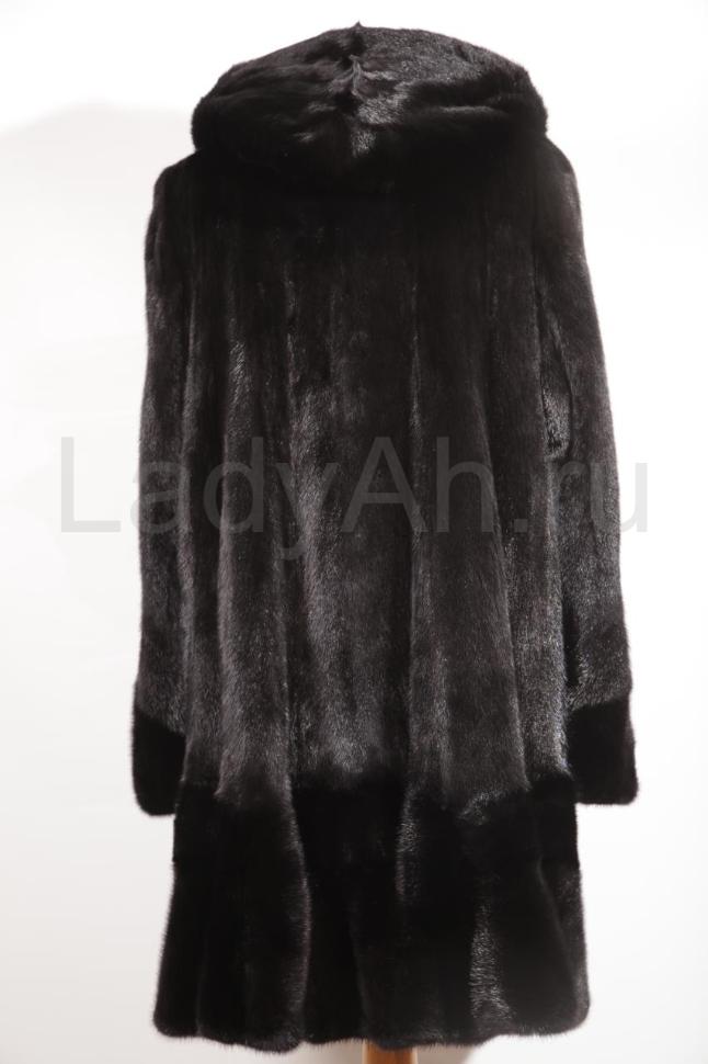 Норковая шубка летящего и женственного фасона, напоминающая бабочку. Капюшон с отворотом, рукава расклешенные. Низ шубки и низ рукавов выполнен из пластин-перевертышей (остевым волосом вверх), за счет чего достихаетмя очень стильный эффект бархата, или "черный и еще чернее". Шубка разнообразит гардероб, подчеркнет тонкий вкус своей обладательницы, создаст модный и актуальный образ современной леди. Сшита в роспуск, состояние: новая, с этикетками.