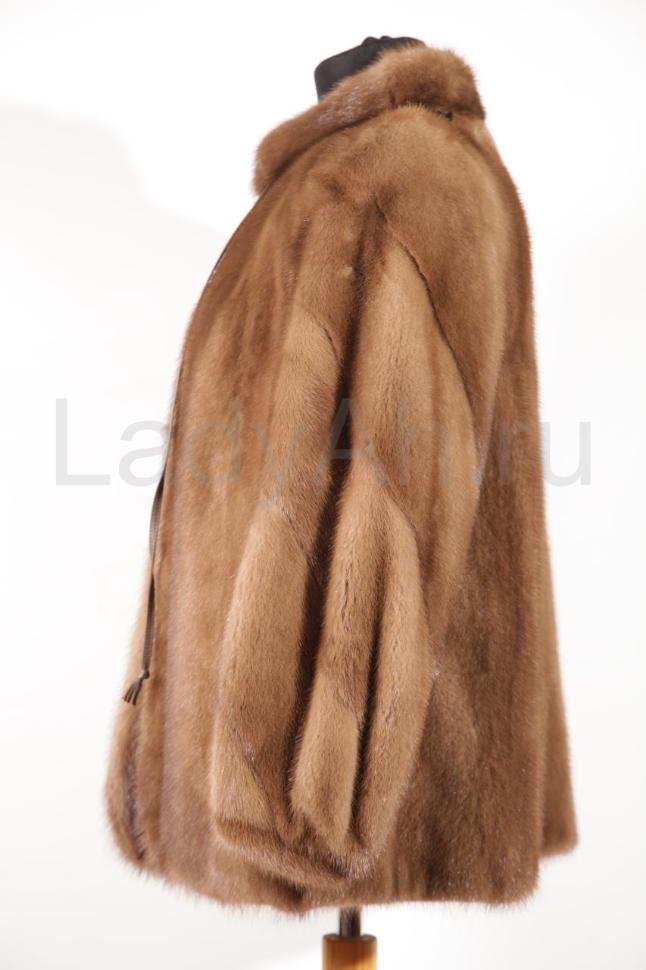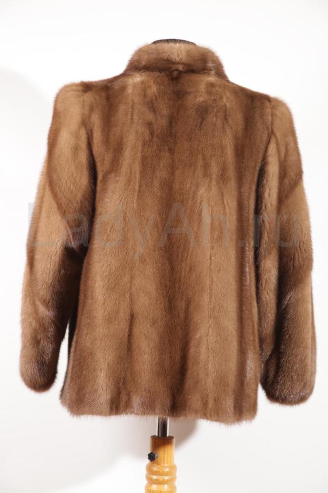 Норковый полушубок прямого фасона с аккуратным воротничком стойка, рукава скроены диагональными пластинами. Мех очень мягкий, пластичный, блестящий. Лаконичный фасон, практичная длина, для авто и межсезонья. Ловкий, теплый, удобный. Сшит цельно-роспускным способом. Б\у, состояние хорошее.