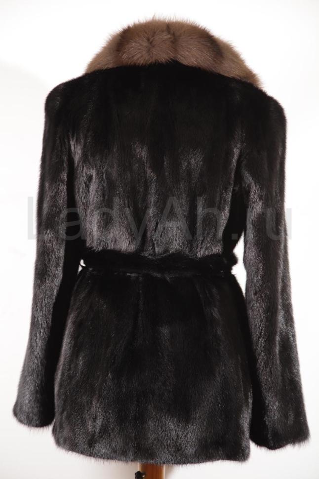 Норковый полушубок прямого фасона и меховым поясом в тон основному изделию, цвет черный бриллиант с искристым блеском. Английский воротник (можно застегнуть "наглухо"), отделанный тонированнной под соболя куницей (предположительно), который контрастирует на общем фоне и выгодно подчеркивает овал лица. Удобный и ловкий, замечательно садится по фигуре, послужит отличным помощником в создании стильных образов с брюками и юбками "карандаш", добавит элемент лоска в Ваш гардероб. Подойдет и для езды в авто.