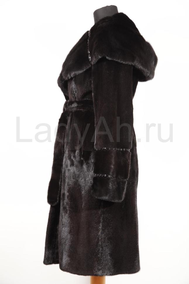 Норковая шуба с капюшоном "кобра", прямого кроя, цвет черный бриллиант. На капюшоне и рукавах дорожки из сверкающих камней Сваровски (Swarovski). Полустрижка - местами оставлен остевой волос, прекрасно видно, что это норка. Мех норки густой, плотный, качественный, с зеркальным блеском. Великолепно сочетается с любыми предметами зимнего гардероба: юбки, платья, брюки, джинсы. Сочетание прямого кроя с элементами декорации, идеально впишется в гардероб леди, придерживающейся стиля "дорогая простота", шубка станет настоящей зимней любимицей своей обладательницы.