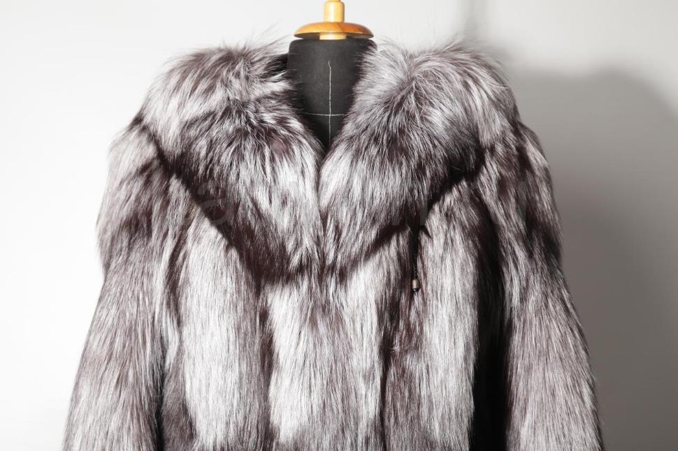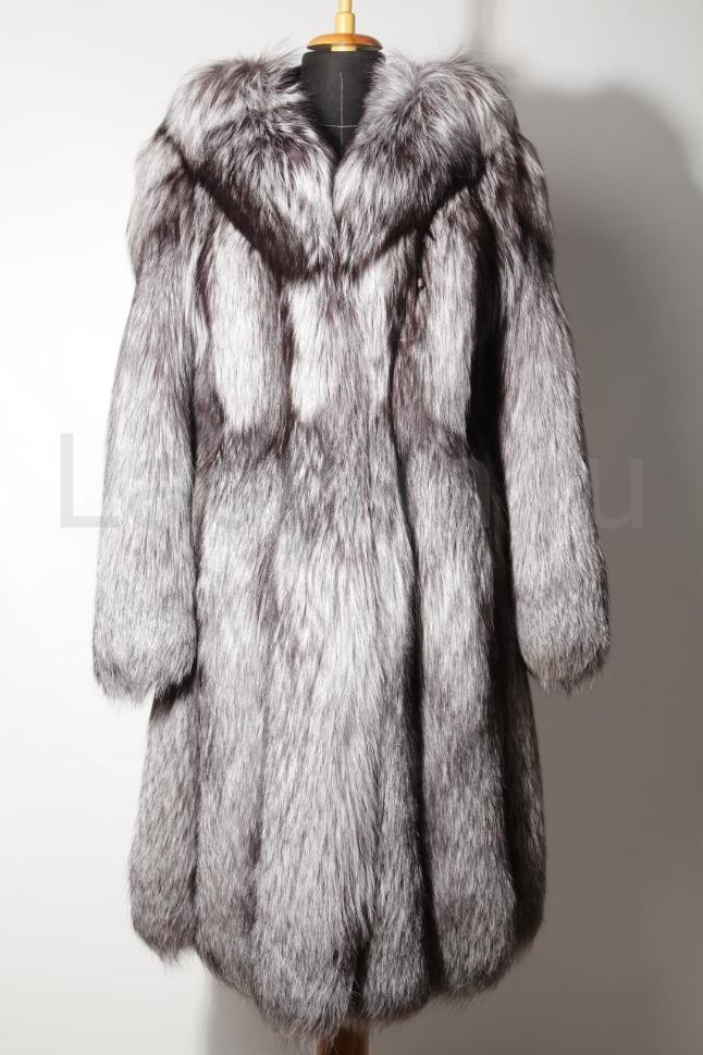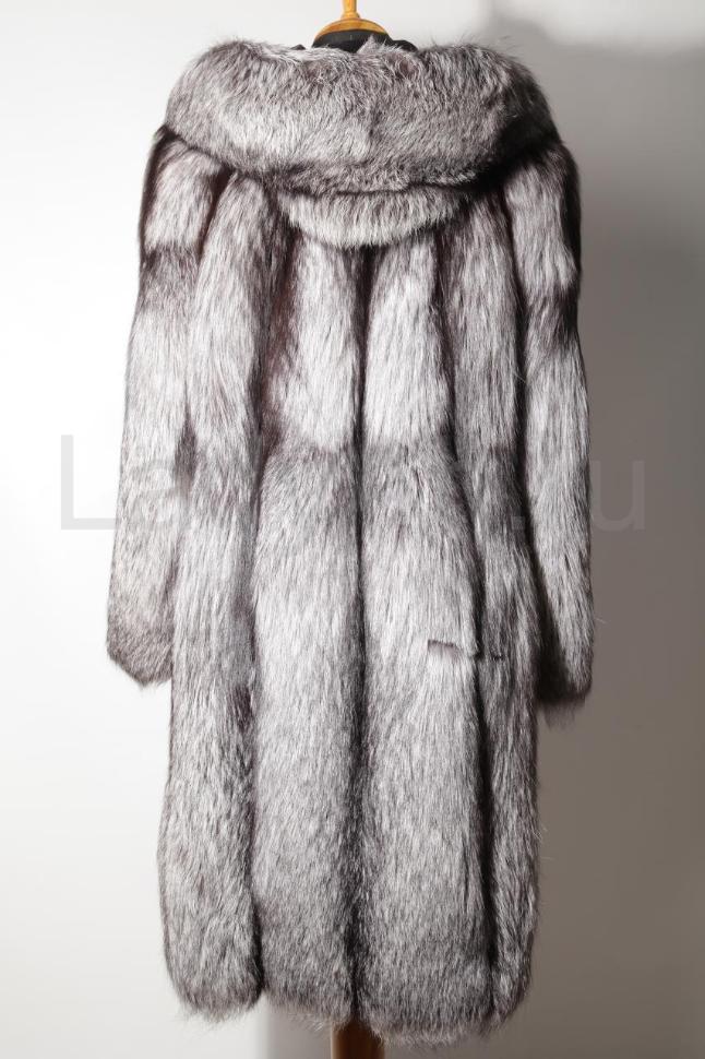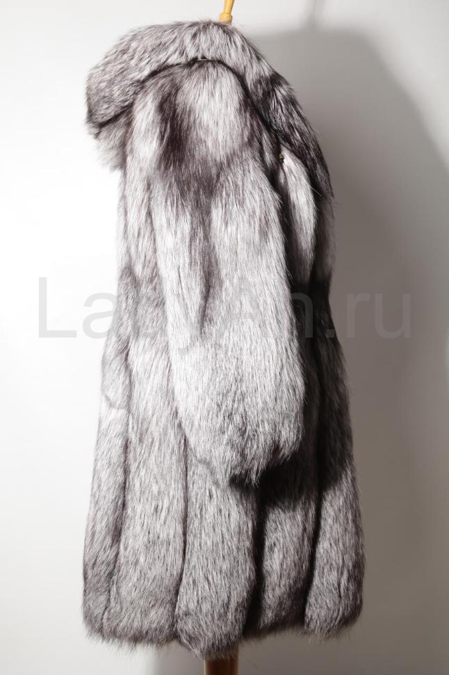 Великолепная и шуба из цельной чернобурки, слегка расклешенная, с односторонним капюшоном (является несомненнным плюсом, не тянет назад и не "душит" при таком объемном мехе.