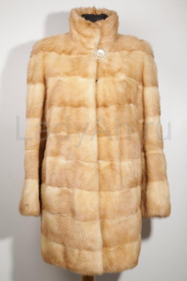 Норковая шубка с воротником стойкой, прямого фасона, сшита поперечными пластинами. Редкий, в меру нарядный и очень благородный оттенок белое золото - подойдет как брюнеткам, так и блондинками или же обладательницам медных и русых волос. Мех густой, плотный, с драгоценным золотистым блекосм. Практичная длина, строгий геометричный крой. Изумительная шуба для любого случая. Сшита цельными пластинами. Б/у, состояние отличное.