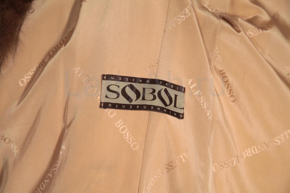 Норковый полушубок с роскошным объемным капюшоном "коброй" из отборного мягчайшего соболя. На рукавах и по низу также отделка из соболя в тон (см. фото). Фасон прямой.