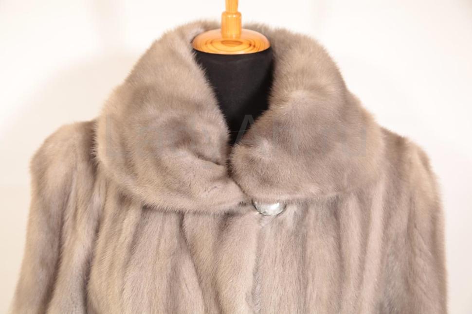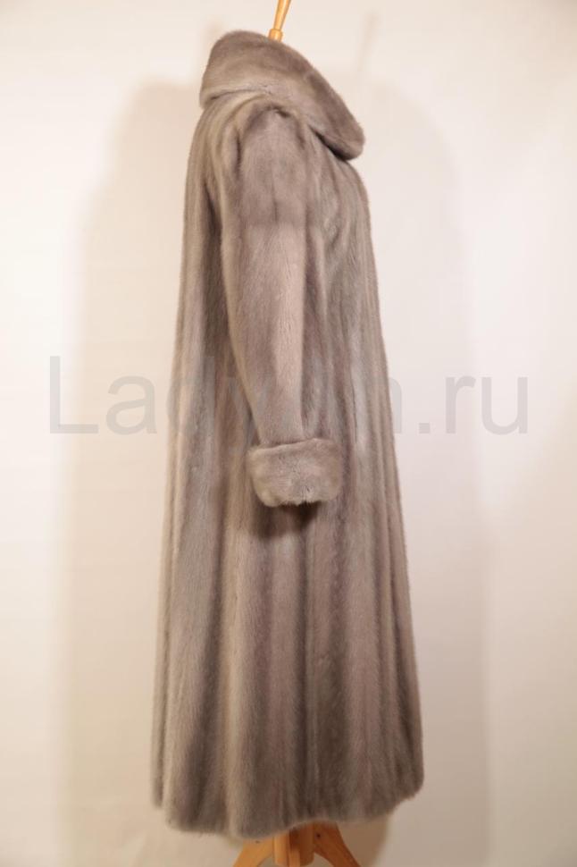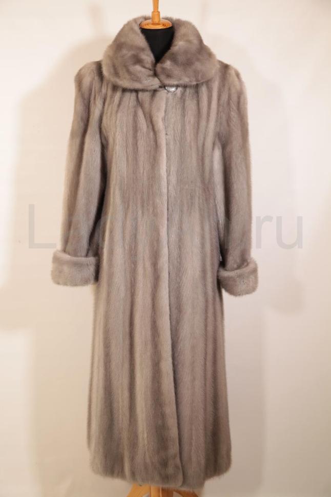 Норковая шуба фасон трапеция, с полукруглым отложным воротом. Рукава с отворотами.
