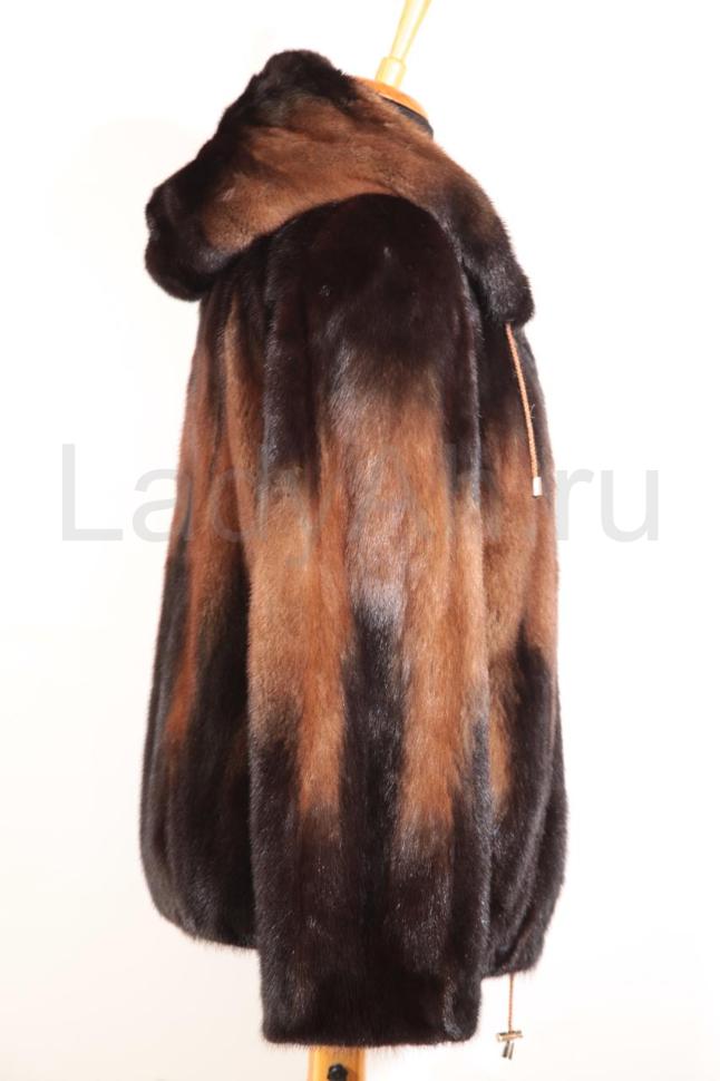 Норковый полушубок с капюшоном, прямого фасона, внизу затягивается для тепла и удобства носки. Цвет приятный и практичный. Прекрасно подходит под юбки, брюки, платье и любой низ.