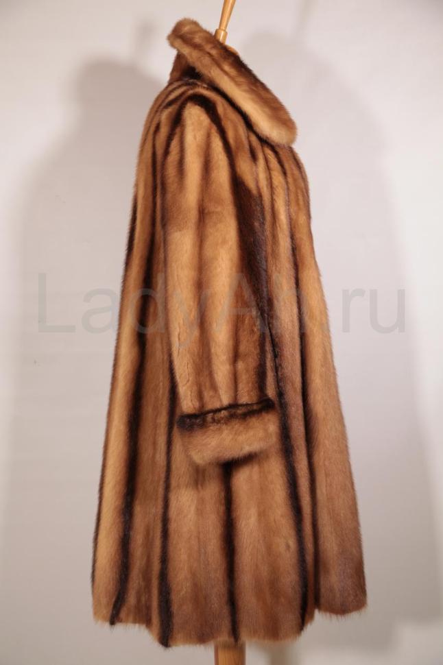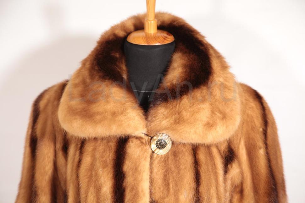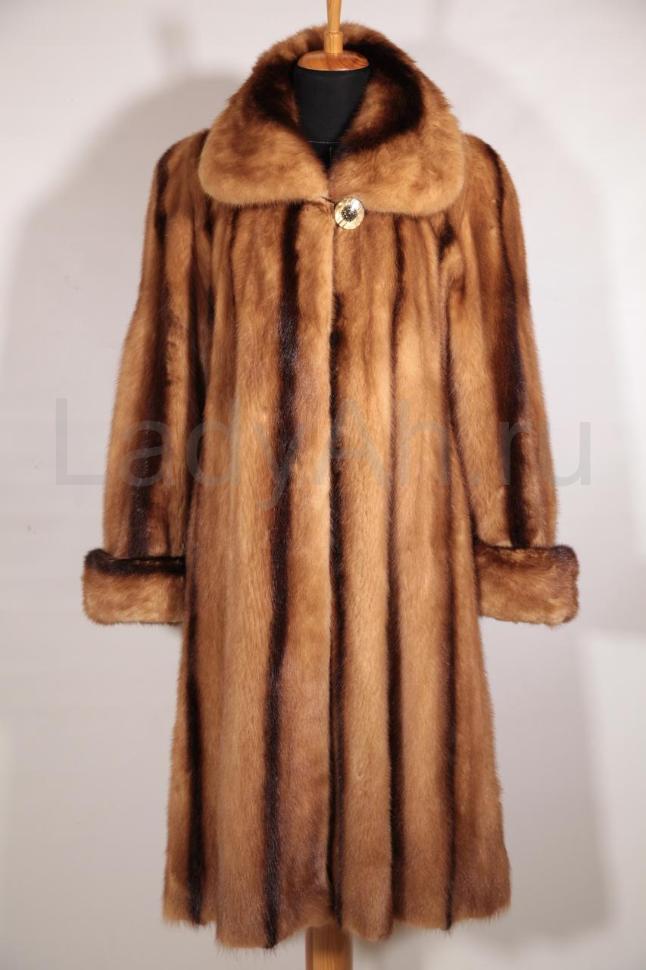 Норковая шуба классического силуэта с отложным воротом. Рукава с отворотами. Много меха: густого, добротного, блестящего.