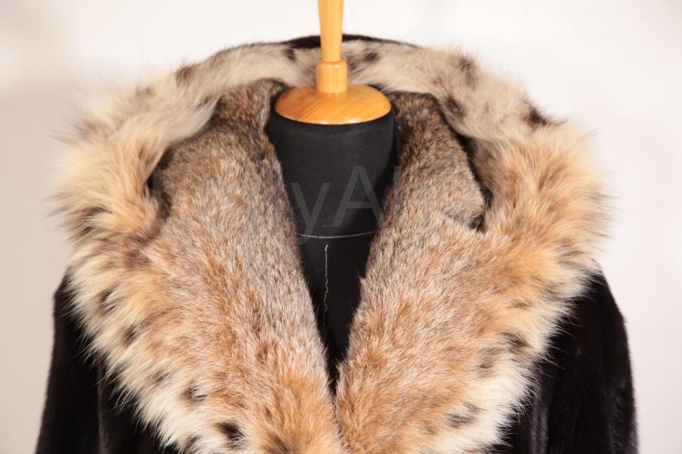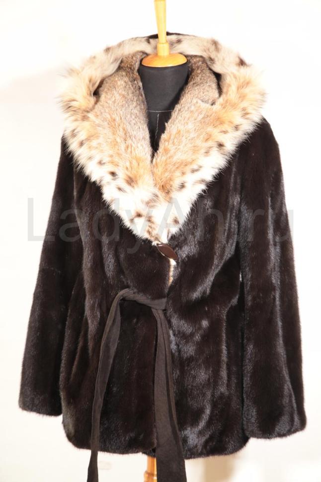 Норковый полушубок экстравагантного фасона летучая мышь (кимоно), с капюшоном, изнутри отделанным отборным мехом рыси. Мех добротный, короткоостный и бархатистый (визуально как Blackglama).