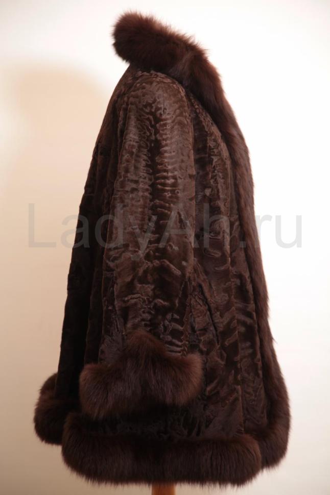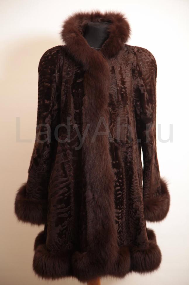 Шуба фалдящего фасон трапеция, отделка на воротнике, по передней планке, подолу и на рукавах из шикарного крашеного песца. Мех шубы плотный, с красивым завитком и богемным бриллиантовым блеском. Цвет просто изумительный. Шуба теплая, подойдет как зимний вариант. Редкое и очень актуальное сочетание мехов, трендовая модель, модная и стильная, украсит гардероб современной модницы.