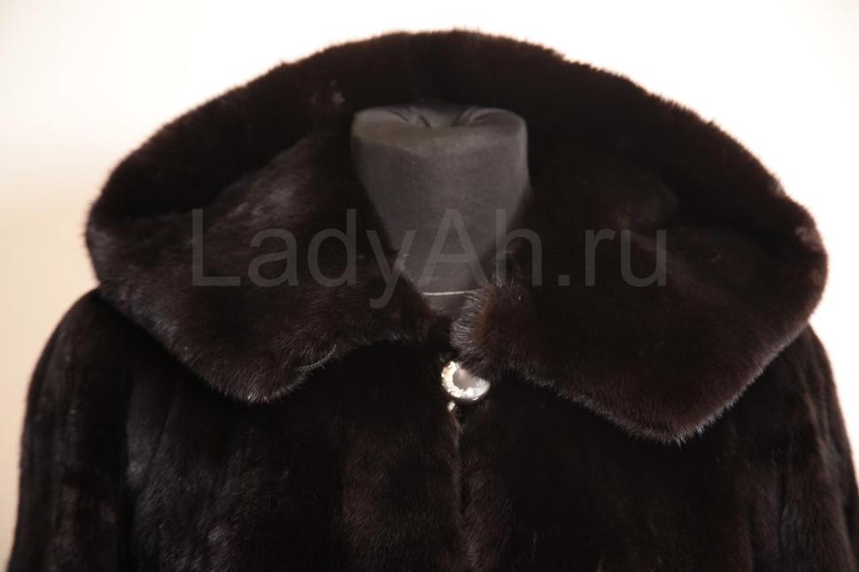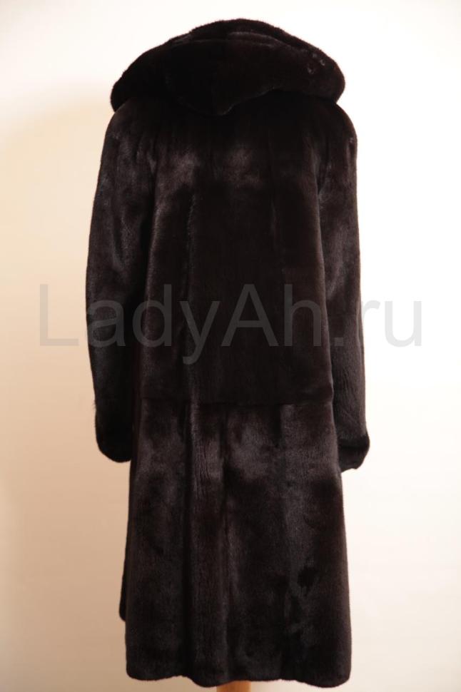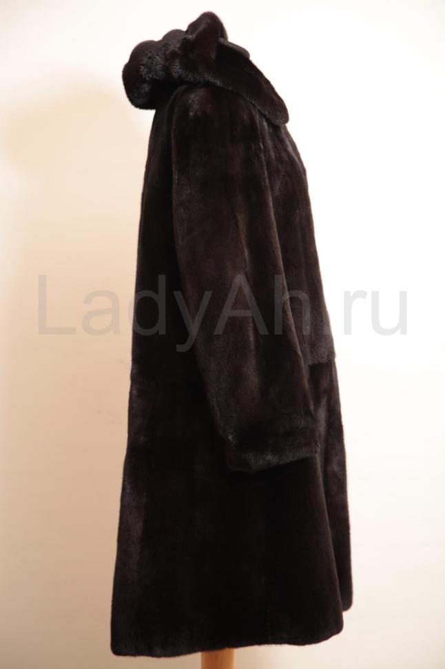 Норковая шуба с капюшоном, слегка расширяющегося к низу кроя.