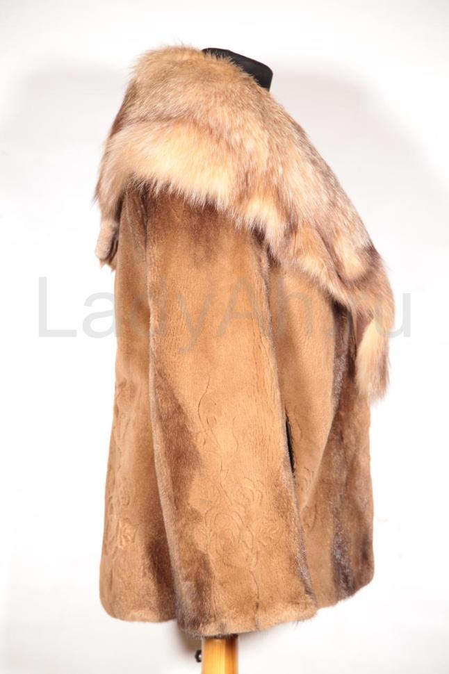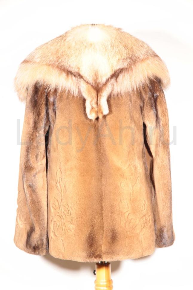 Норковый полушубок, фасон прямой, ворот роскошный из лисы в тон. Рукава чуть расклешенные. Выполнена с применением технологии разноуровневой стрижки норки - грувинга (местами оставлен остевой волос, прекрасно видно, что это норка). На рукавах и по низу цветочный лазерный рисунок. Легкий, совершенно невесомый в носке, при этом в меру яркий и заметный, этот полушубок с успехом подчеркнёт природное очарование своей обладательницы, её тонкий вкус и обаяние.