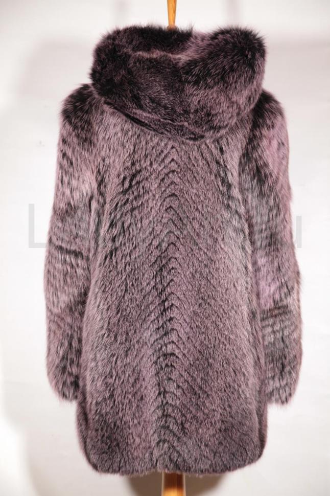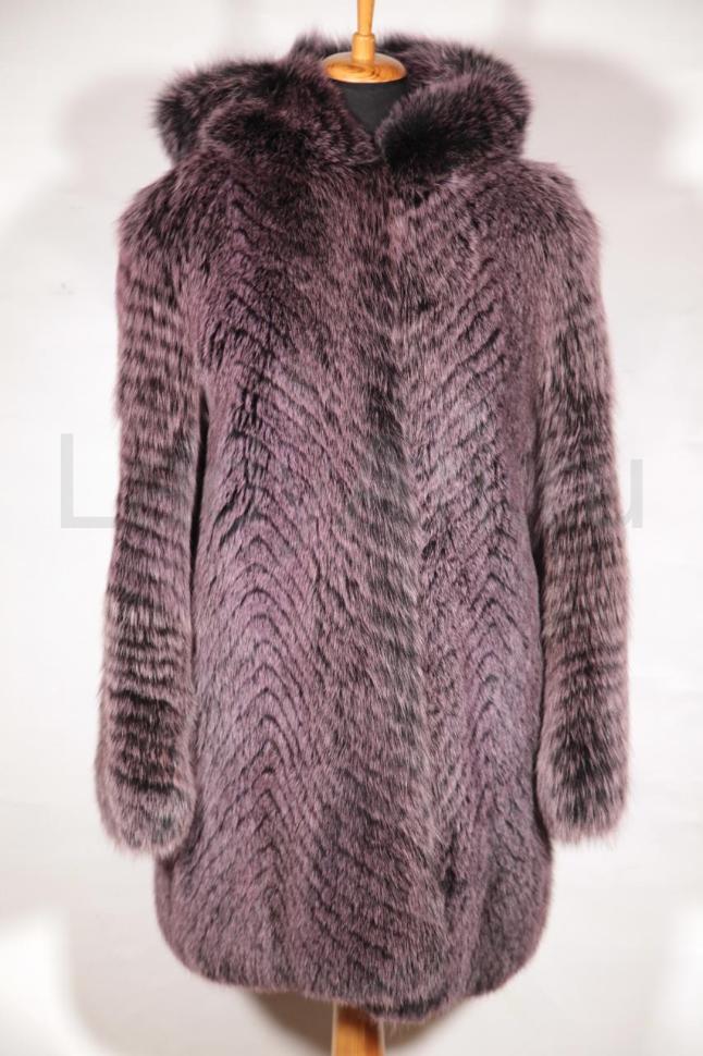 Шуба из отборного песца в росшив, с капюшоном. Выкладка меха зигзагообразная (см. фото). Мех мягкий, пушистый, приятный как на взгляд, так и на ощупь. Мех объемный, очень красиво смотрится в движении. Цвет редкий - лавандовый, с россыпью серебристых остевых волосков. Актуальная модель, модная и стильная - словно сошедшая со страниц глянцевого журнала.