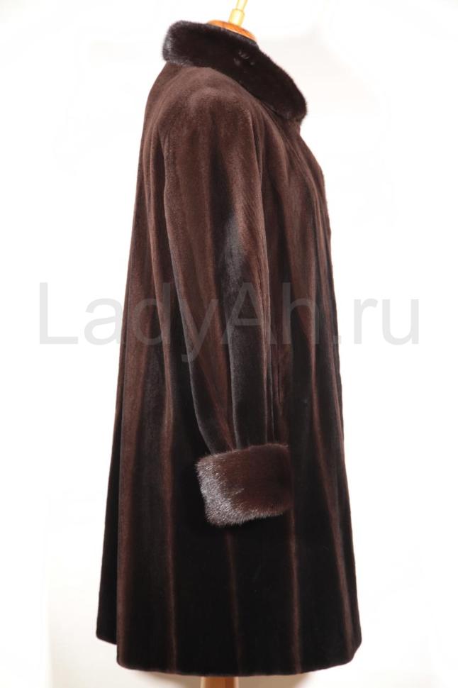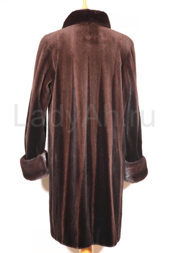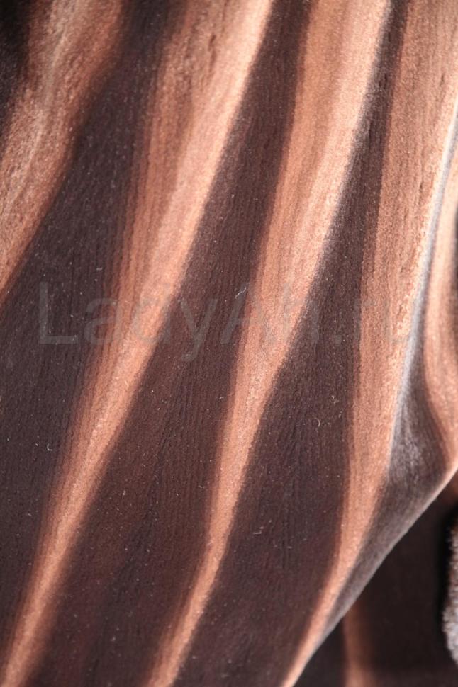 Норковая шуба прямого фасона, с отложным воротом и рукавами с отворотами, с кропотливой графичной выкладкой меха (см. фото). Ворот и отвороты рукавов выполнены из нестриженой норки оттенка чёрный бриллиант, сама же шуба выглядит и ощущается, как дорогой бархат, завораживает переливами меха. Выглядит статусно, дорого и лаконично, совершенно с определенным шиком и лоском. Подчеркнёт стройность своей обладательницы.