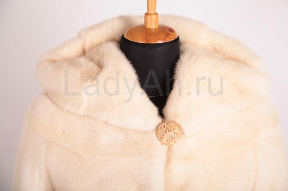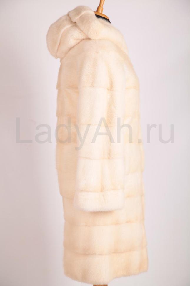 Норковая шуба прямого силуэта, с очаровательным удобным капюшоном. Мех великолепен - густейший, богатый на подпушь, с искристым новогодним блеском. Шуба великолепно садится по фигуре, струится, смотрится нарядно и при этом неброско, подчеркивая природную красоту своей обладательницы, окутывая ореолом тепла и комфорта. Создана для ценительницы прекрасного, мечтавшей осчастливить себя светлой шубкой в практичной длине и оттенке. Сшита поперечными пластинами, б\у, состояние отличное.