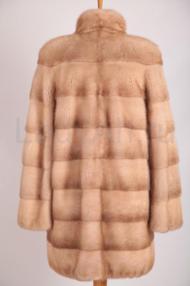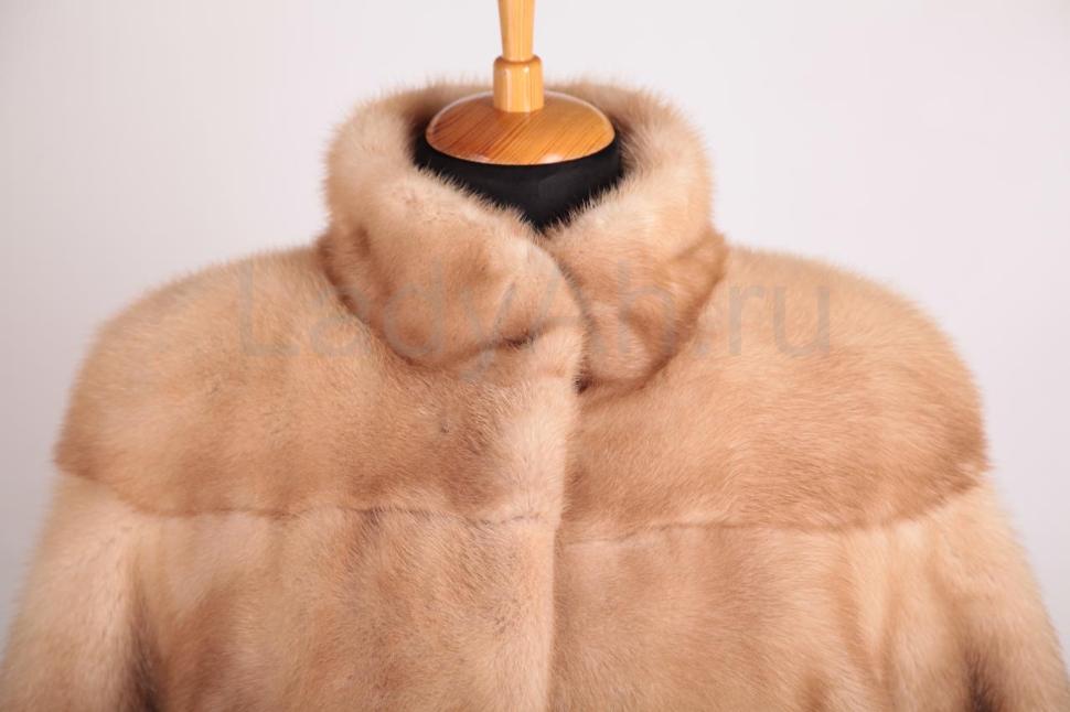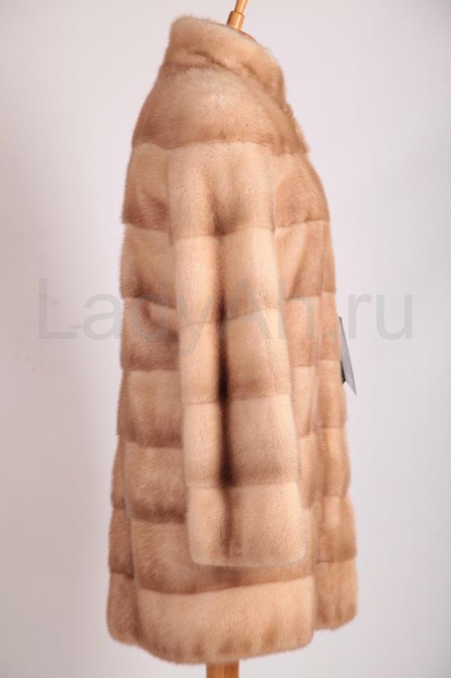 Невероятно стильная норковая шуба прямого фасона, удивительного и завораживающего цвета пастель. Воротник стойка, шелковый подклад.