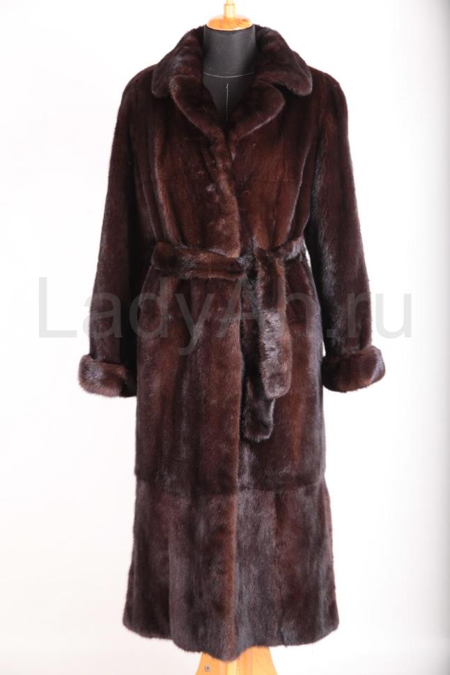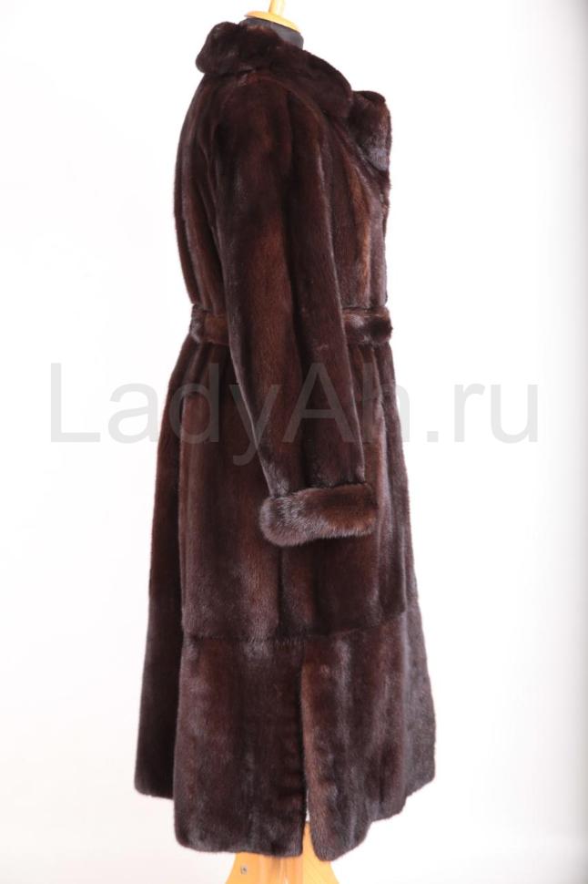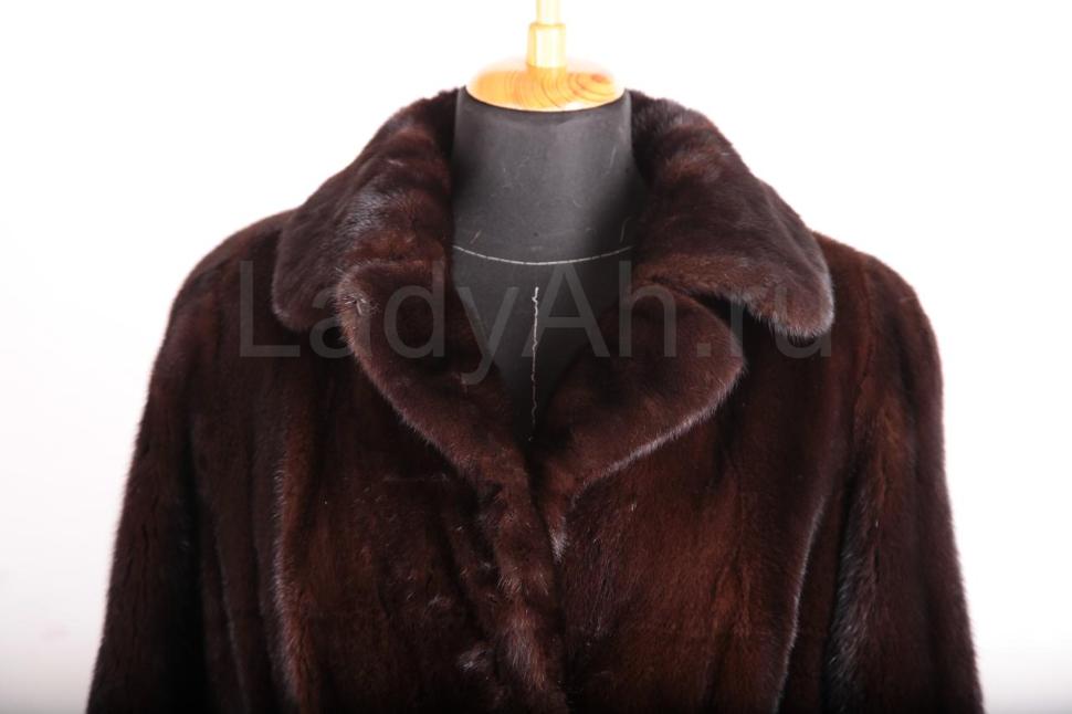 Норковая шуба с широким английским воротом (можно носить в двух положениях: как распахнутым, так и застегнутым наглухо.