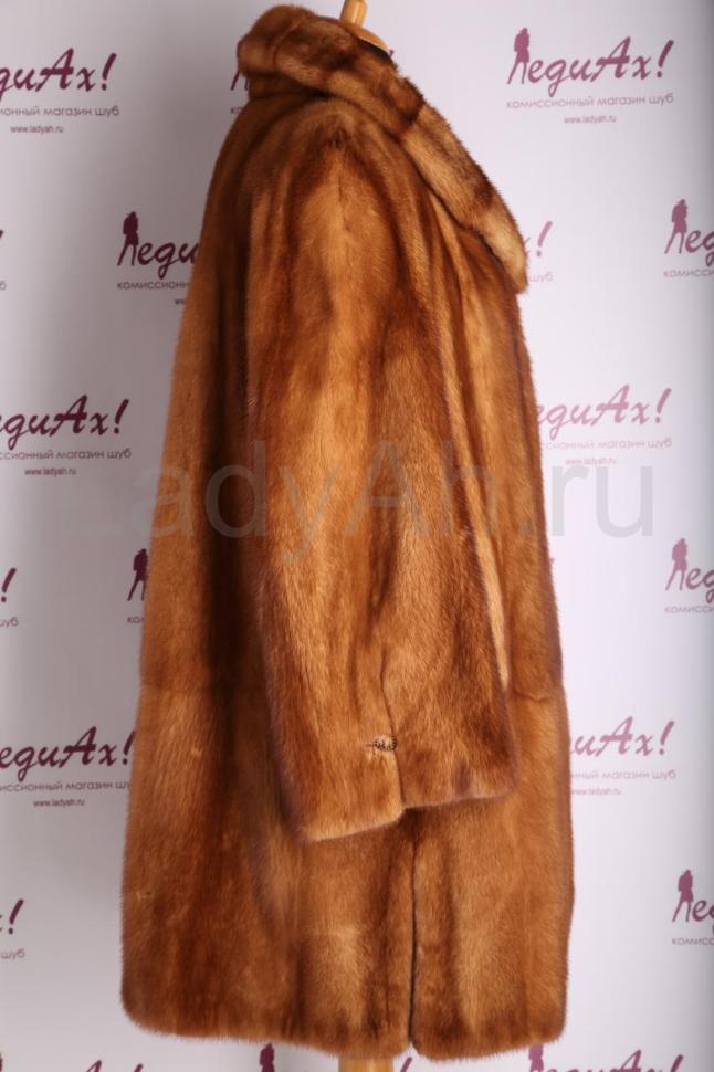 Норковая шуба свободного кроя, фасон трапеция, ворот шалька. По бокам шубы разрезы для удобства носки, карманы врезные. Теплый и солнечный золотистый оттенок, столь желанный в холода. Изобилие густого, плотного, блестящего меха (выделка на высоте). В этой шубе удачно сочетаются красота и изящество, простота и практичность, комфорт и уют, классический крой и современная расцветка. Сшита цельными пластинами, б\у, состояние отличное.