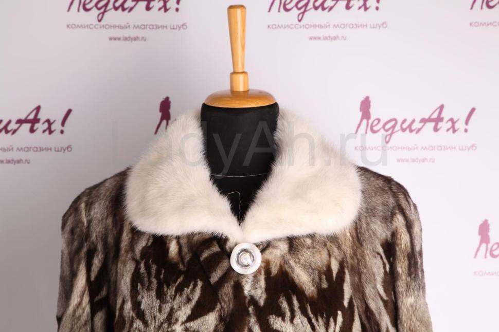 Норковая шуба классического прямого кроя с воротом апаш. Полустрижка (местами оставлен остевой волос, прекрасно видно, что это норка).