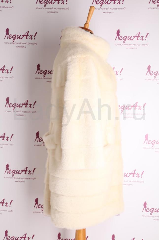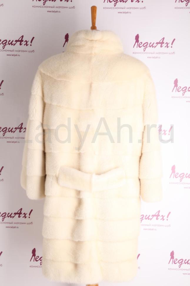 Норковая шуба - фасон французское пальто, воротник стойка, с рукавами 3/4. По спинке имитация пояса (см.фото). Нежный жемчужный оттенок, пореречные пластины, изобилие густейшего, плотного, набивного меха. Оттенок нарядный, искрится и играет на свету. Очень модная, трендовая модель. Утонченная, женственная, стильная шуба для современной леди, притягивающая восторженные взгляды. Для настроения, для неповторимого образа, для тепла и уюта, на радость своей обладательнице! Б/у, состояние отличное.