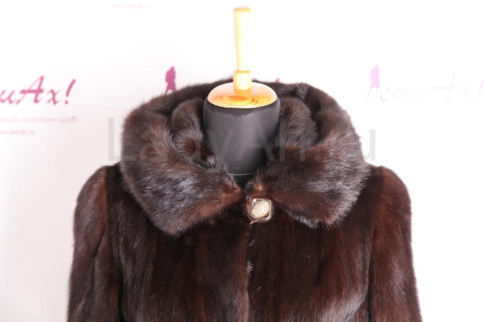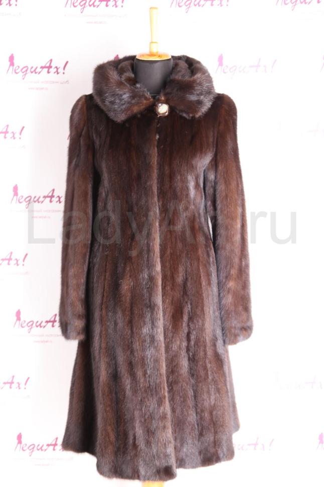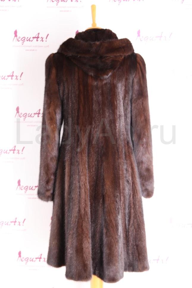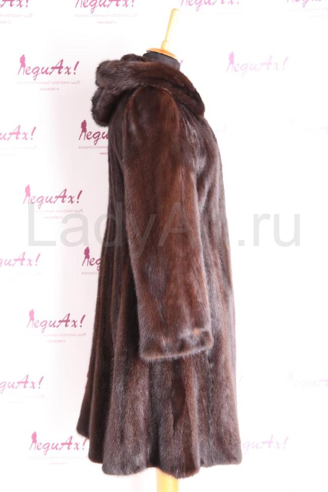Норковая шуба, фасон слегка расширяющийся к низу, как платье, с капюшоном с отворотом. Мех шубы пластичный, густой, очень блестящий. Лаконичный, классический крой, практичная длина - такая шуба согреет и украсит свою обладательницу, станет любимой "базовой" вещью в зимнем гардеробе.