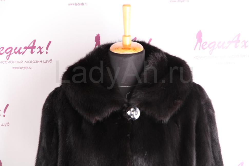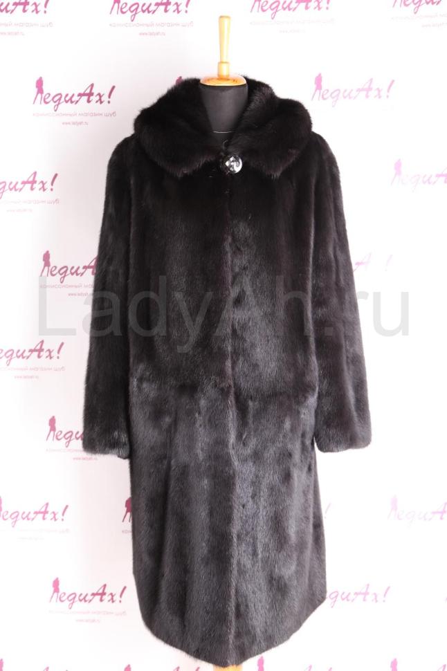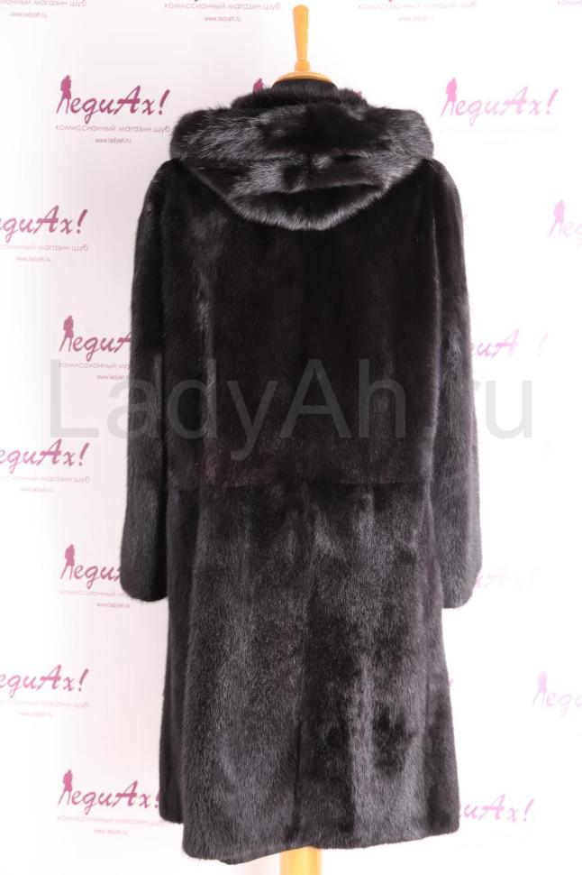 Норковая шубка прямого силуэта, с капюшоном.