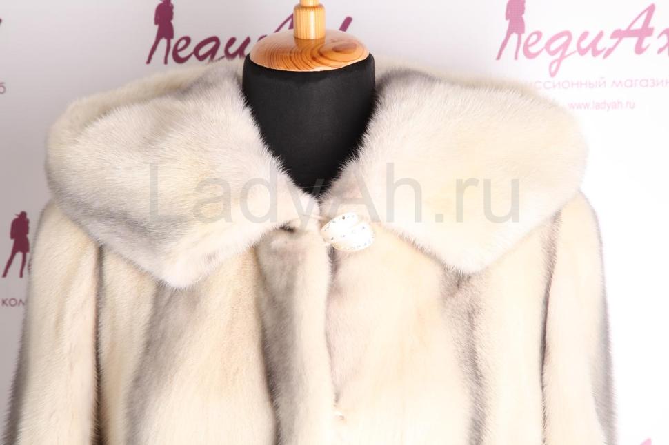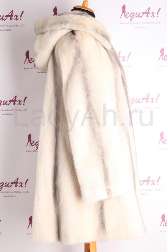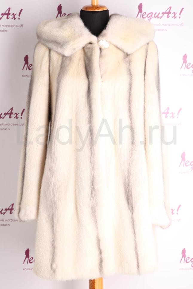 Норковый полушубок изящного и женственного фасона трапеция. Удобный, теплый и аккуратный капюшон завершит образ и послужит прекрасной альтернативой головному убору. Мех ослепительный, притягательный, густой и блестящий. Смотрится очень стильно и чарующе женственно. Полушубок окутает свою обладательницу комфортом и теплом, создаст незабываемый образ, исполненный грации и изящества. Представлен в столь желанной, но так редко встречающейся у полушубков длине. Нежный переход цвета жемчуг с графитовыми продольными полосами. Сшит в роспуск, б\у, состояние отличное.