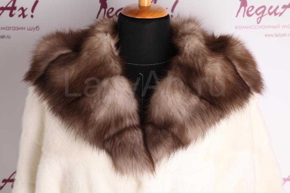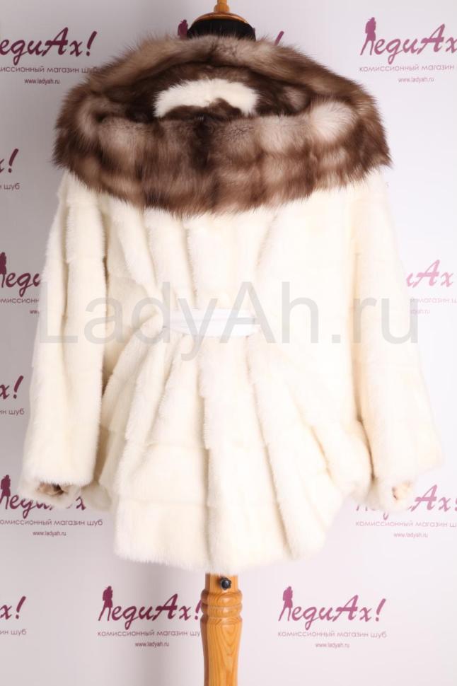 Нарядный норковый полушубок, фасон летучая мышь, с шикарной модной поперечной выкладкой меха. Роскошный объемный капюшон из отборной куницы. Мех очень мягкий, пластичный, с короткой остью и мягкой густой подпушью. Стильная и чарующе женственная вещь для ценительницы прекрасного, которая с успехом подчеркнет тонкий вкус и природное обаяние своей обладательницы, внеся нотки шика и лоска в любой образ. Сшит цельными пластинами, б/у, состояние новой вещи.
