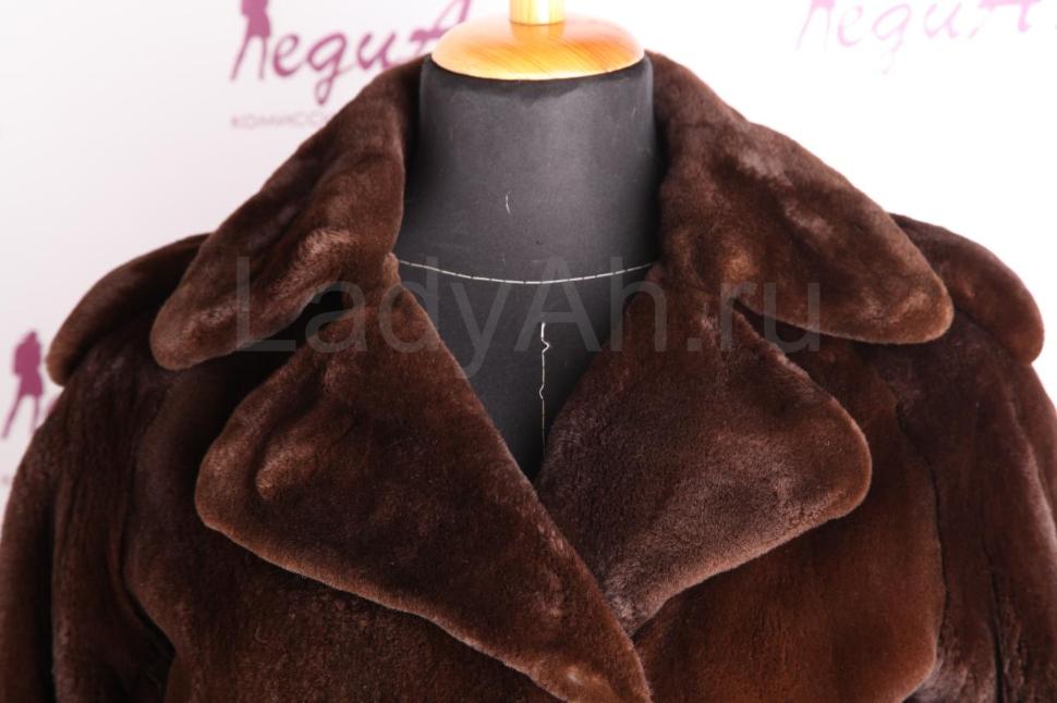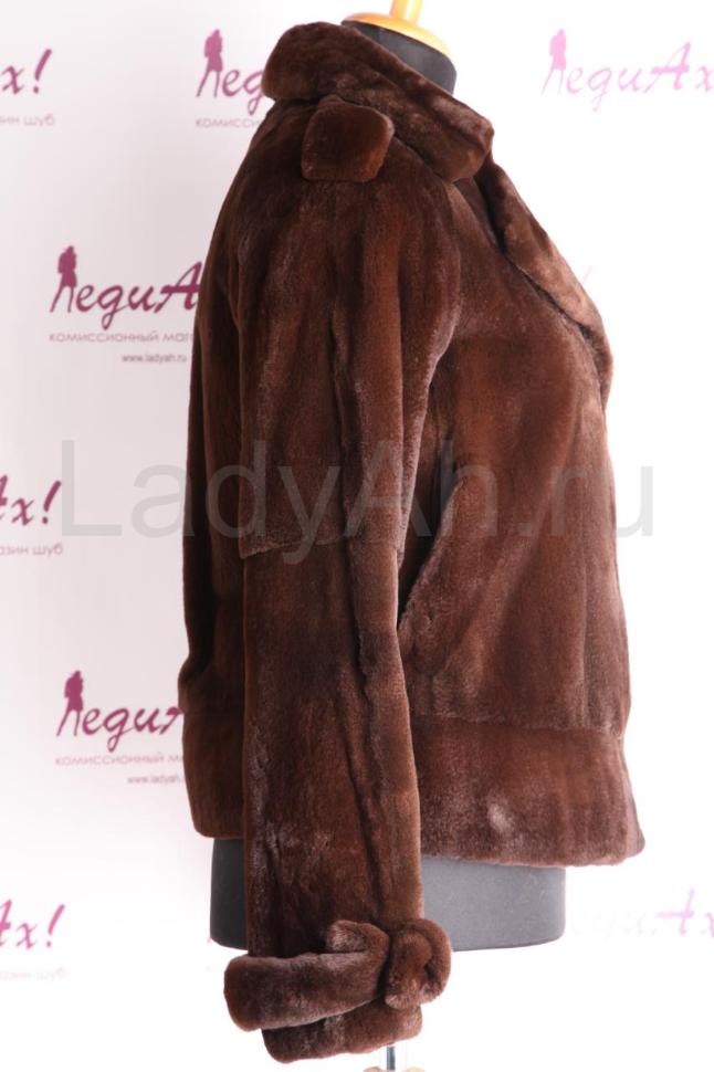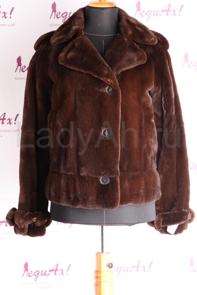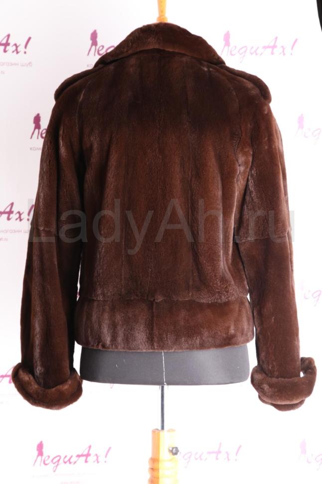 Стильный короткий норковый полушубок из стриженной норки с английским воротником. На рукавах внешние манжеты, на манер тренча. Цвет - чарующий глубокий черно-коричневый нефтяной оттенок. Полушубок смотрится лаконично и современно, поможет создать модный урбанистический образ. Мех очень плотный, при этом плюшевый, приятный на ощупь. Маркировка меха Blackglama.