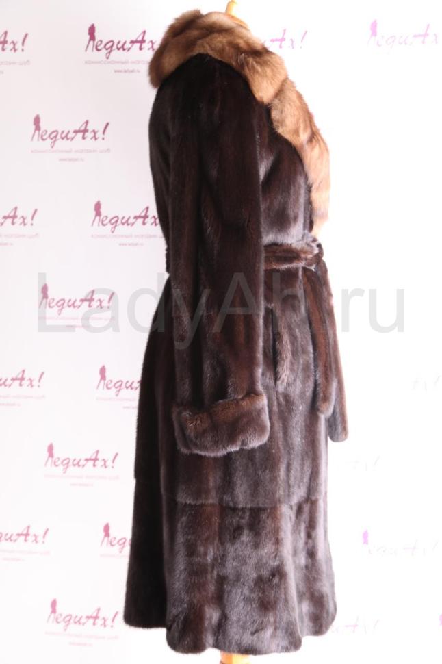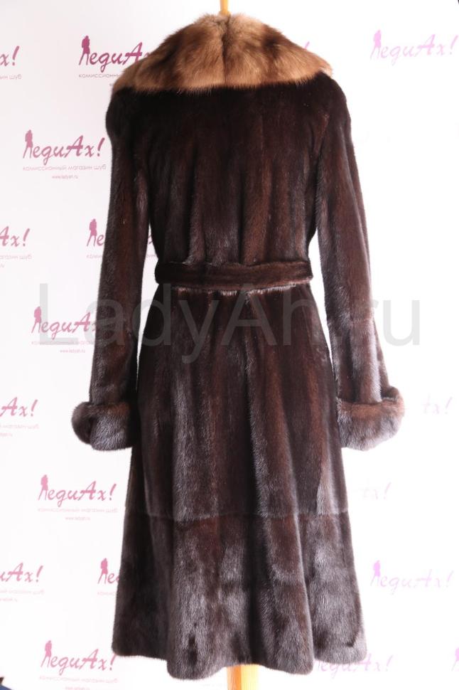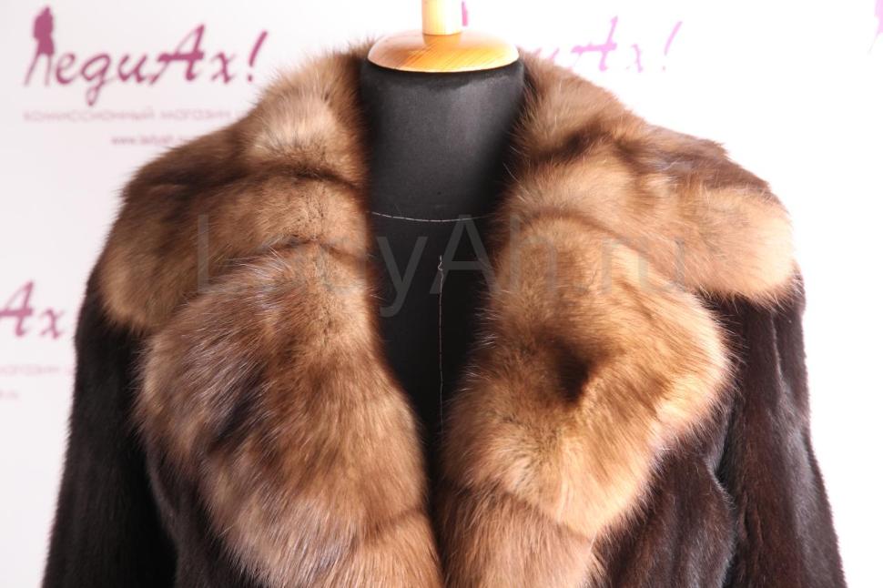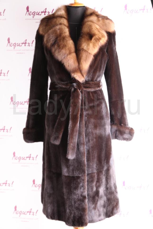 Норковое пальто прямого силуэта, с английским воротом из отборного мягчайшего соболя. Ворот застёгивается в двух положениях. Изобилие роскошнейшего меха, густейшего, короткоостного. Производство меховой фабрики "Екатерина", качество пошива и выделки в лучших традициях данного мехового дома - на высоте.