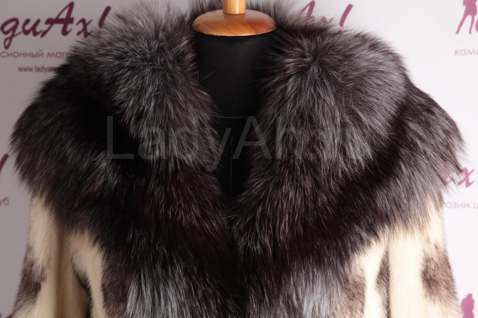 Норковый полушубок классического прямого фасона. Увенчан роскошным объемным капюшоном из отборной чернобурой лисы. Мех полушубка очень густой, тёплый, набивной. Смотрится нарядно и женственно, станет украшением гардероба своей обладательницы, создаст незабываемы образ, полный красоты и изящества.