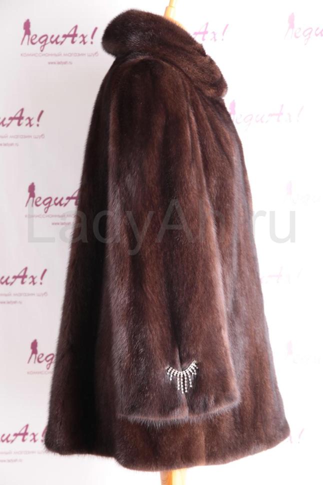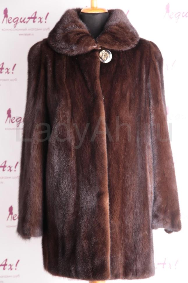 Норковый полушубок кроя трапеция с полукруглым отложным воротом. Рукава слегка расклешенные, с декоративной фурнитурой (при желании, можно легко отпороть). Мех плотный, густой и очень блестящий. Ловкий, теплый и удобный полушубок, прекрасно подходящий для ежедневной носки. Сшит в роспуск, б/у, состояние отличное.