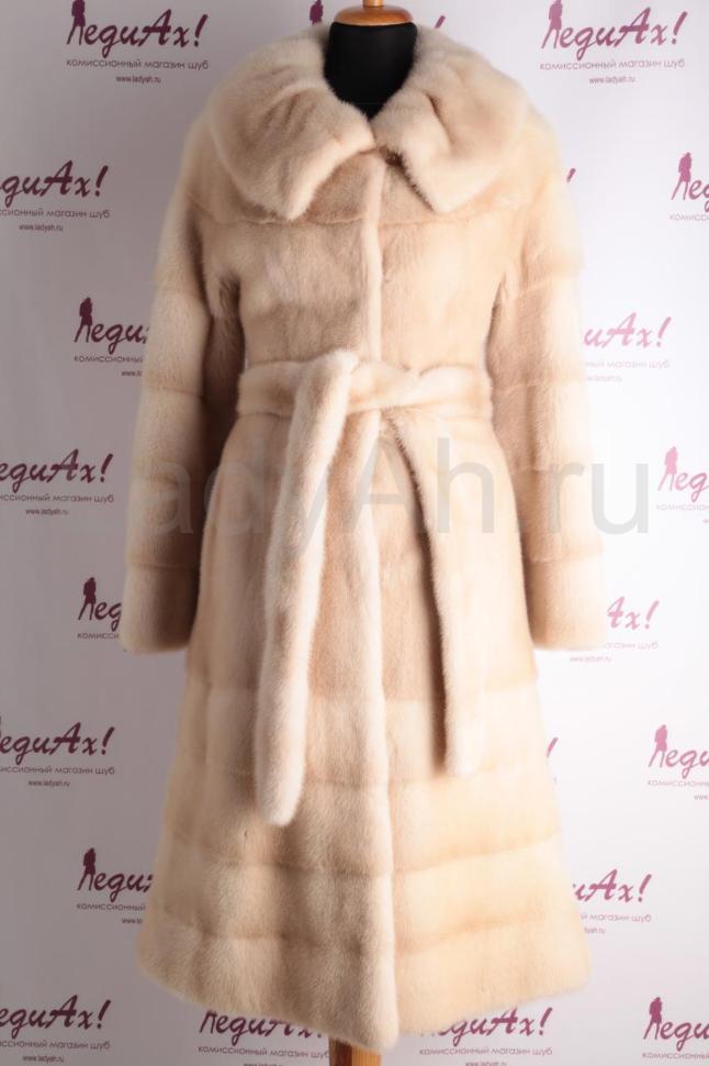 Новая чудесная норковая шуба с фантазийным воротом, фасон платье, выполнена с применением поперечных пластин на рукавах и по низу шубки, от линии бедра. Цвет восхитительный- светлая шампань, с плавным перетеканием оттенков. Талия подчеркнута норковым поясом. Мех по-настоящему густой, богатый на подпушь, плотный и короткоостный. Обладает драгоценным искристым блеском. Выделка меха на высоте. Производство Versavi, Италия.