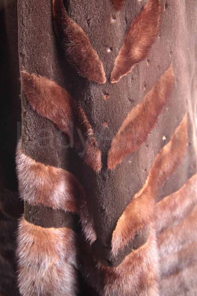 Шуба скроена с применением технологии интарсия по низу шубы (см. фото). Интарсия - люксовая технология выкладки меха, сложная и кропотливая, трудоемкая, отдаленно напоминающая выкладку паззла. Высоко ценится среди скорняков и экспертов меха.