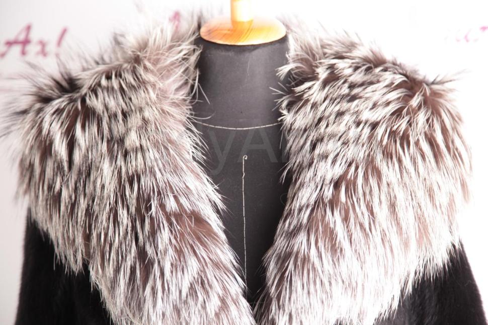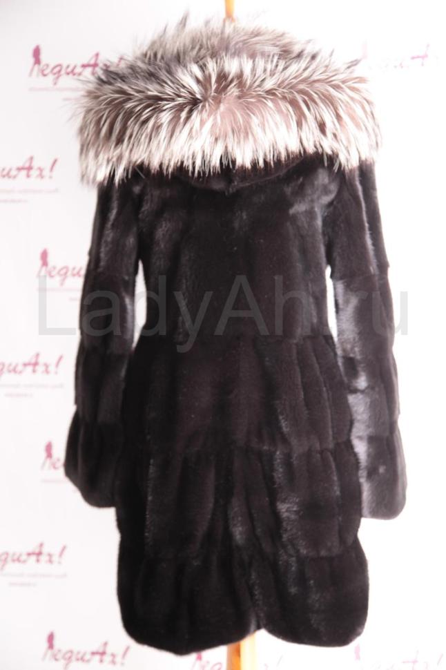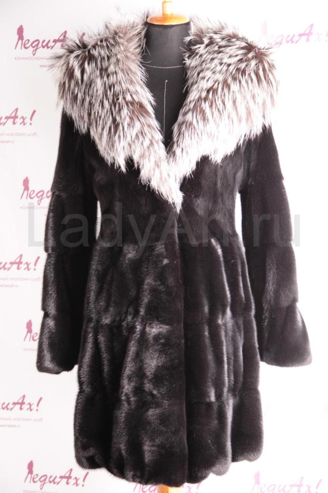 Норковая шуба с капюшоном из чернобурки. Сшита крупными добротными поперечными пластинами (поперечка).