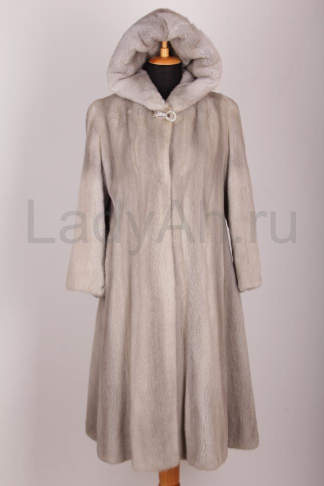 Норковая шуба с капюшоном, в премиальном мехе, густом и короткоостном.