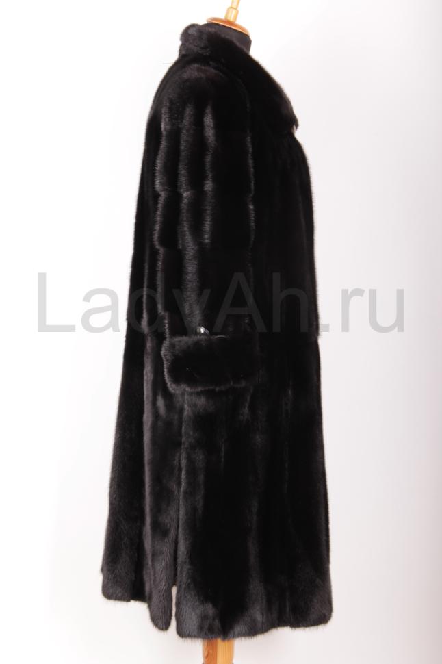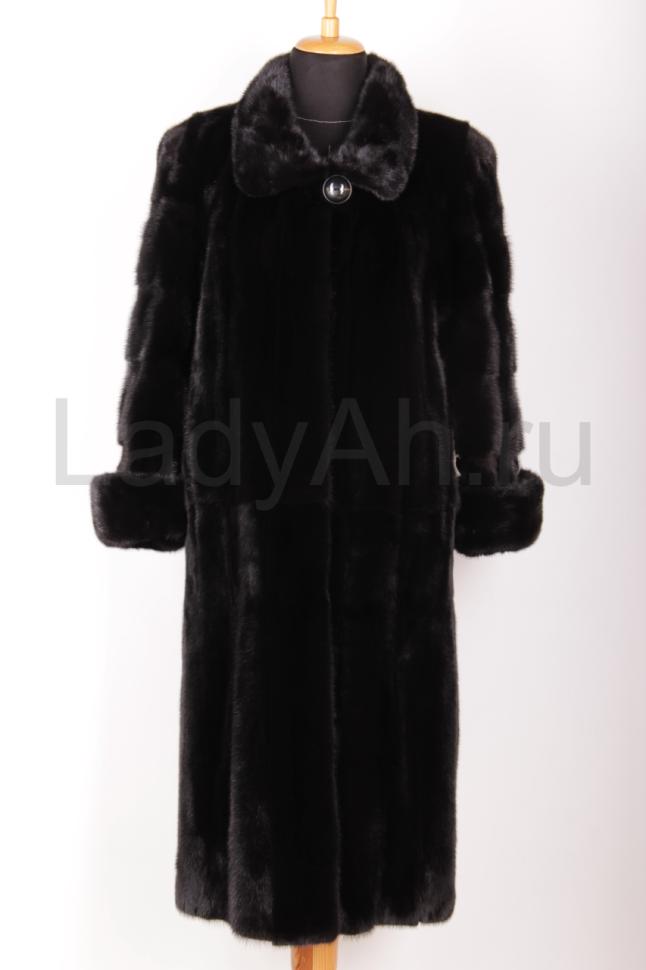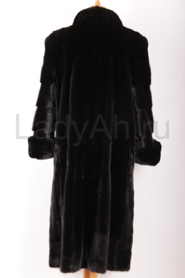 Шикарное норковое длинное пальто, сшито цельными пластинами.