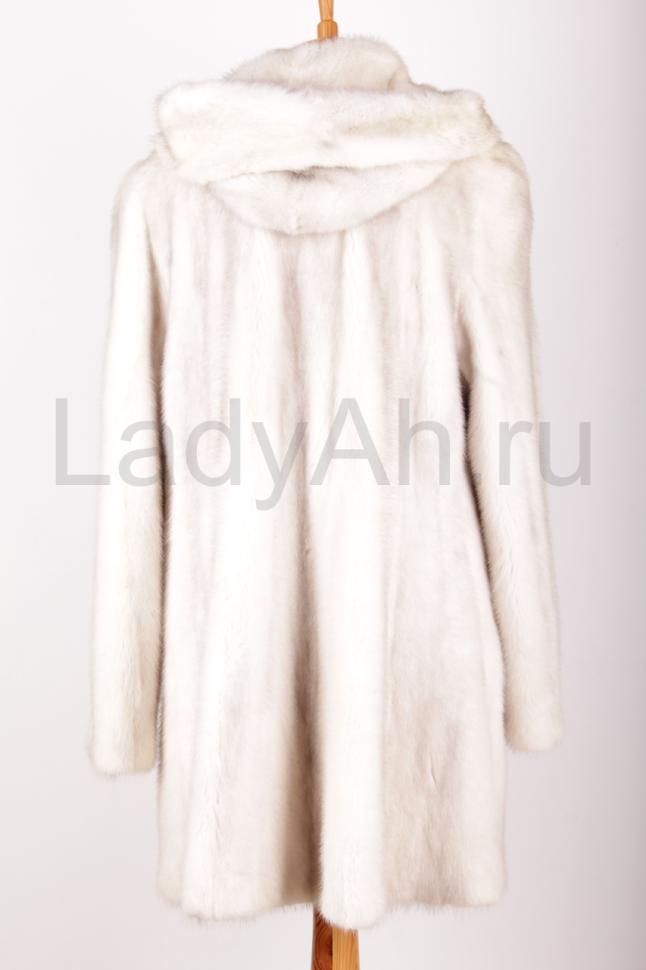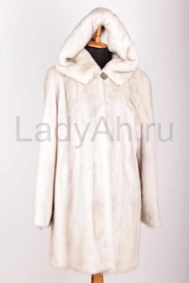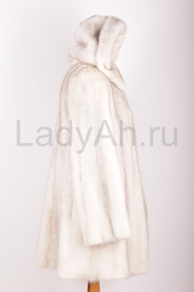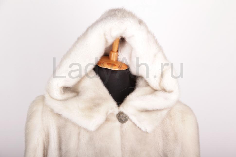 Норковая шуба с капюшоном, расклешенная, фасон трапеция. Цвет жемчужный с переходами цвета в серый. Подходит под многую одежду, функциональная и женственная.
