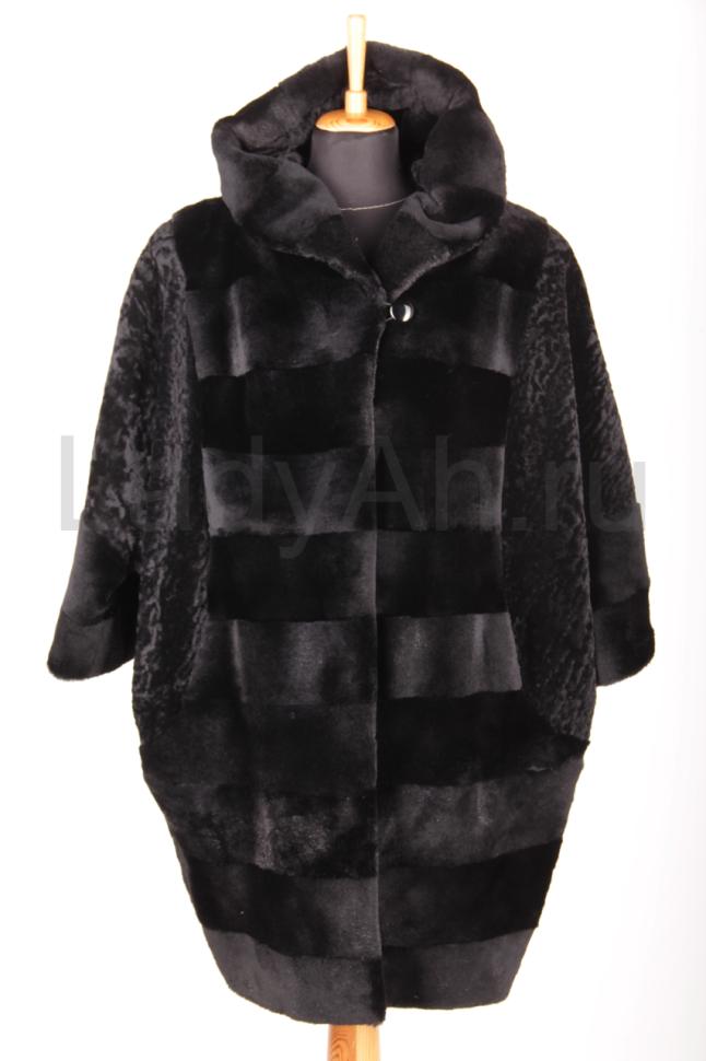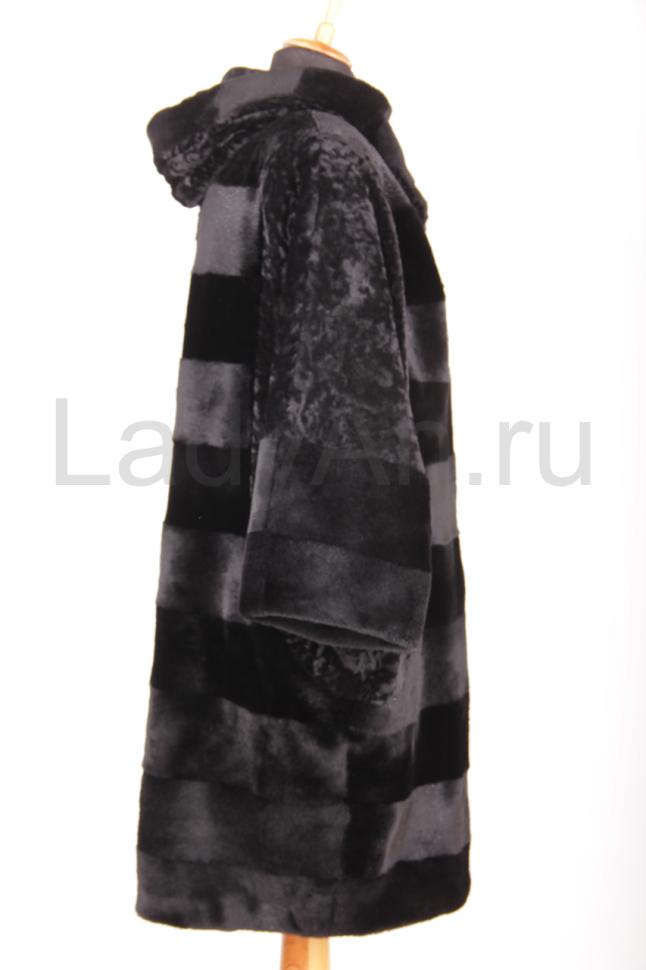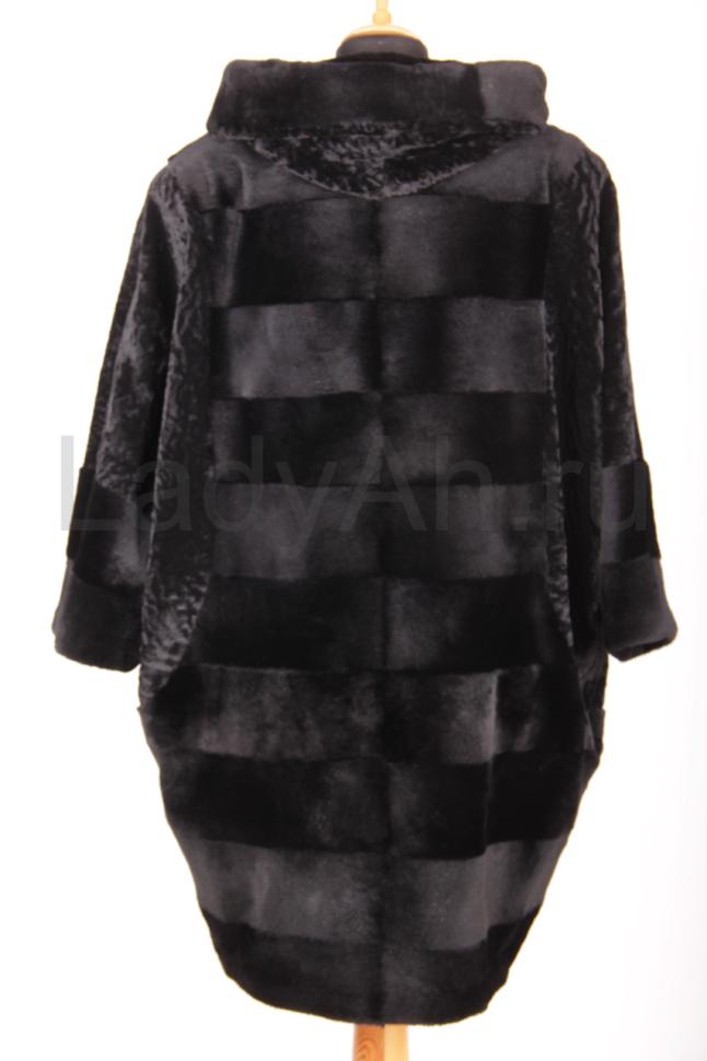 Удлиненный полушубок из стриженной нутрии, с отделкой из астрагана (стриженный мутон) на рукавах. Удобный и ловки, отлично садится по фигуре, не стесняет движения.