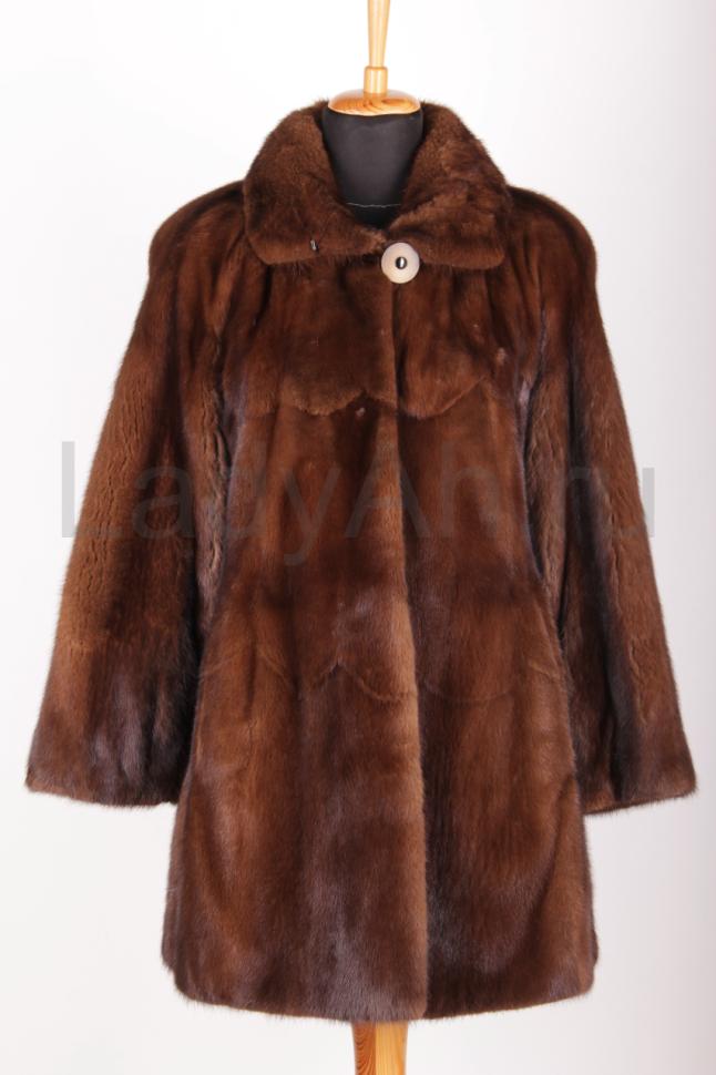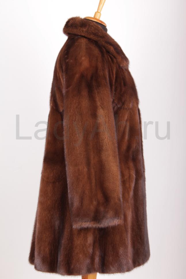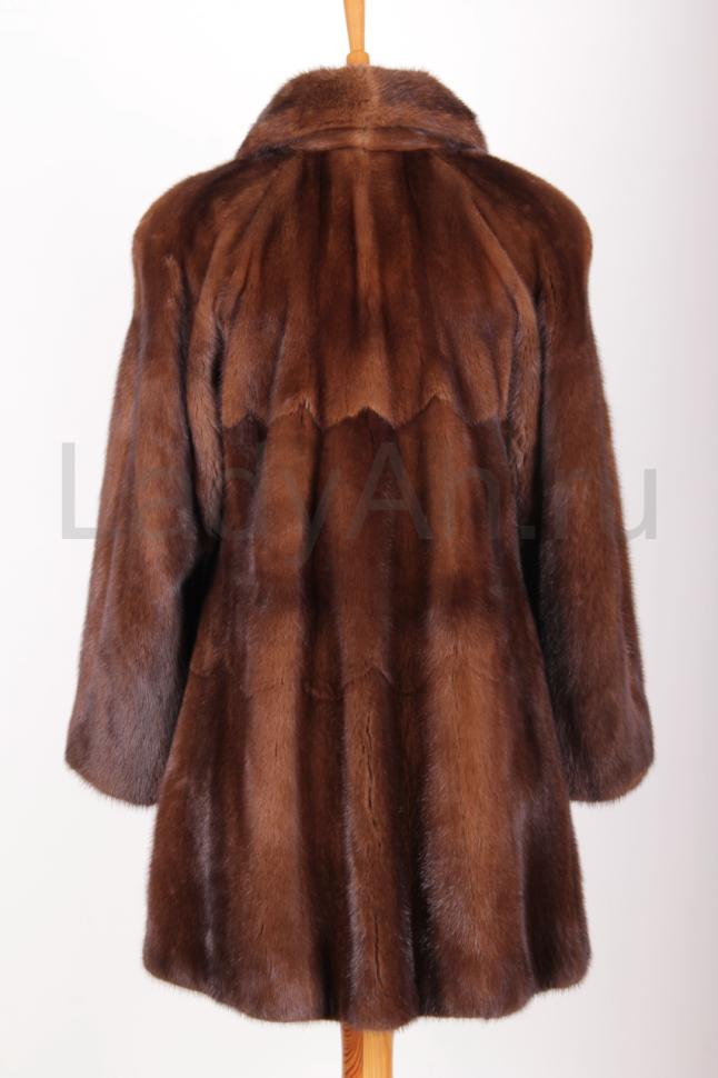 Цельный норковый полушубок цвет орех. Трапеция, волнообразный стык меха "ромашка", ворот аккуратный отложной, подойдет на невысокий рост.