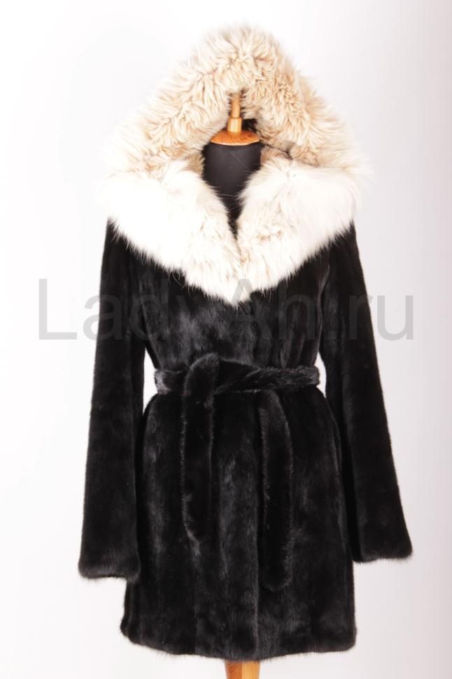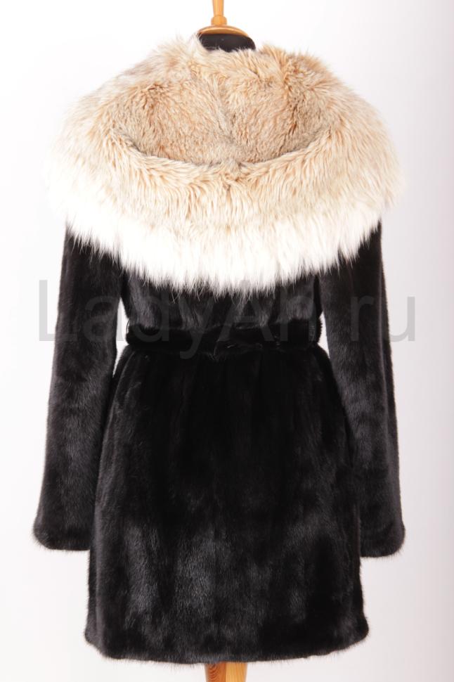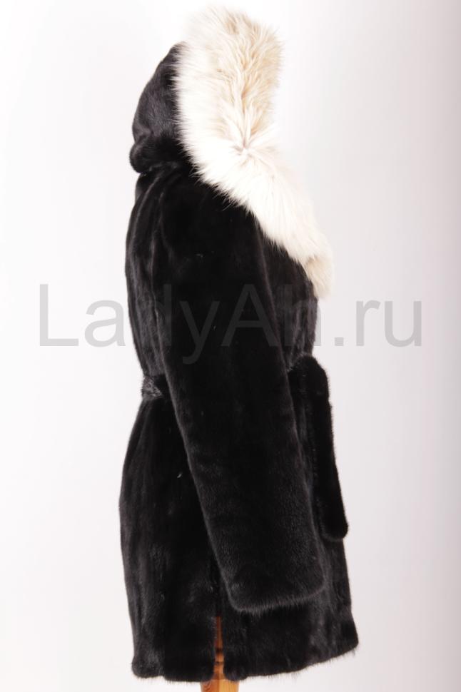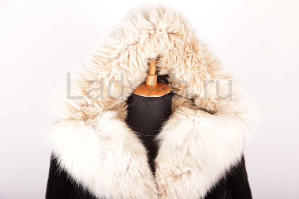Удлиненный норковый полушубок с капюшоном. Модель «Автоледи».