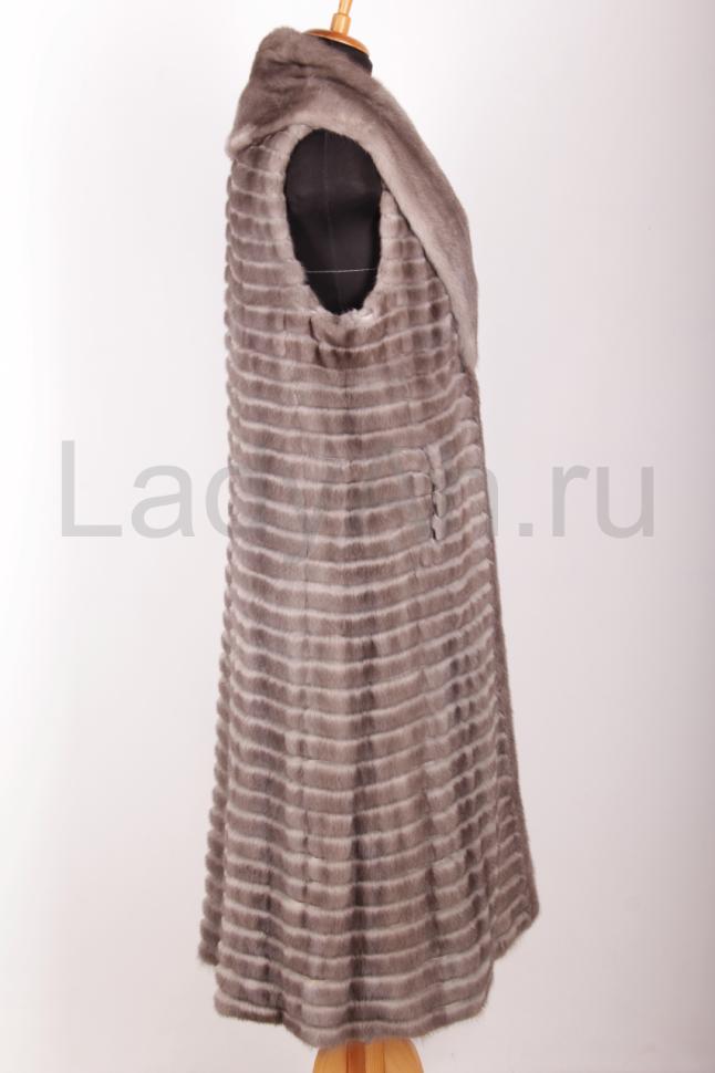 Новый длинный норковый жилет, Цвет графит — главный герой новой эстетики. Это цвет интеллекта, бетона и стали. Не просто серый, а сложный, глубокий и холодный оттенок, который работает как идеальный фон для любых текстур и цветов Вашего гардероба. Он делает жилет универсальным арт-объектом.