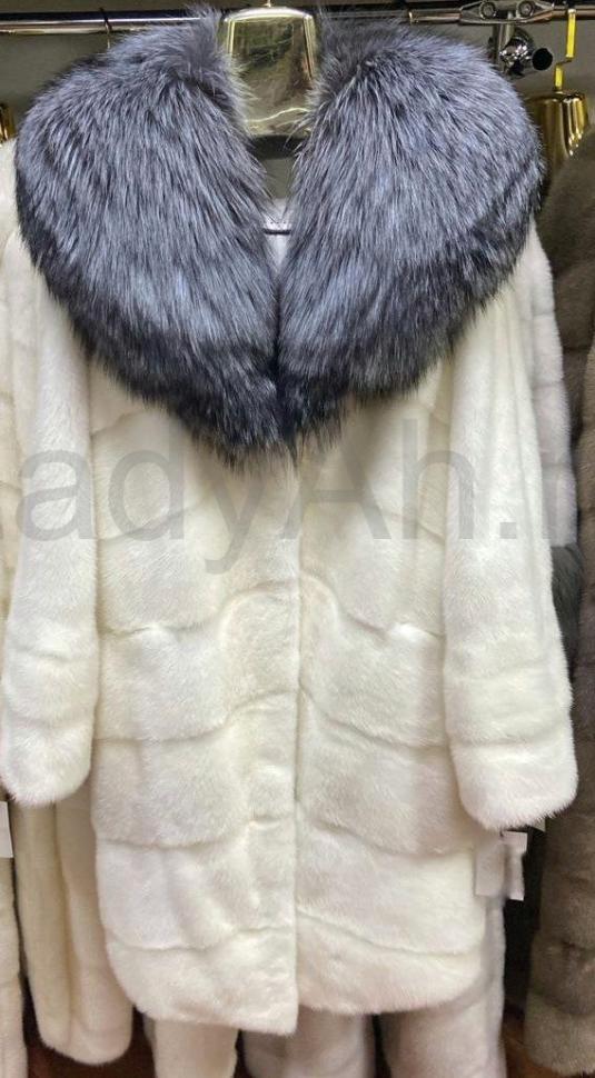 Эта шуба — дерзкое высказывание в мире меха. Абсолютная белизна белоснежной норки символизирует чистоту, роскошь и смелый современный взгляд. Мягкий, сияющий мех создает эффект сияющего ореола.