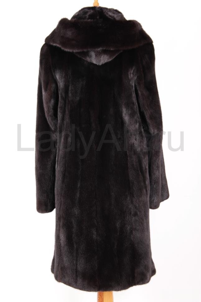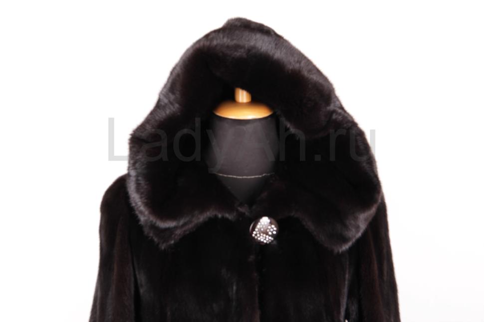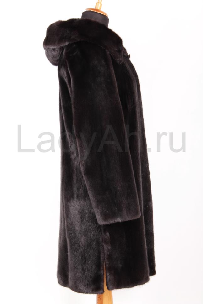 Норковая шуба с капюшоном, фасон пальто, сшита в роспуск, цвет черный бриллиант, мех нафа.