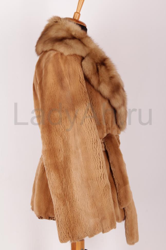 Отделка из золотой куницы добавляет яркий контраст и роскошную деталь. Тёплый, солнечный оттенок куницы оживляет силуэт и сразу поднимает статус вещи.