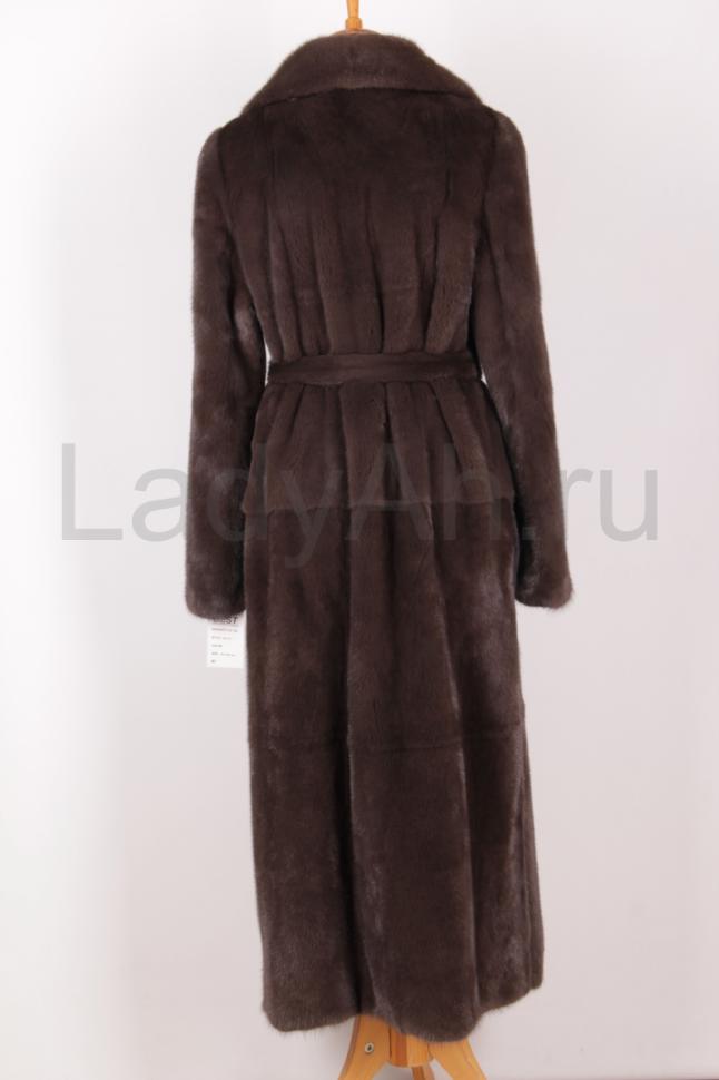 Новая длинная норковая шуба, длина 130 см, английский воротник, фасон прямой (халат), цвет уголь.