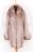 Отделка кристальной лисой: Главная деталь модели. Длинноворсовый, пушистый мех кристальной лисы (очень светлый, почти белый, с холодным отливом) контрастно выделяется на гладкой норке. Отделка идет по передней планке шубы (вертикальная вставка) и на рукавах. Это добавляет модели объема и выразительности.