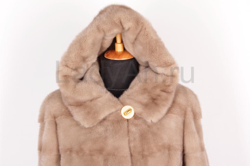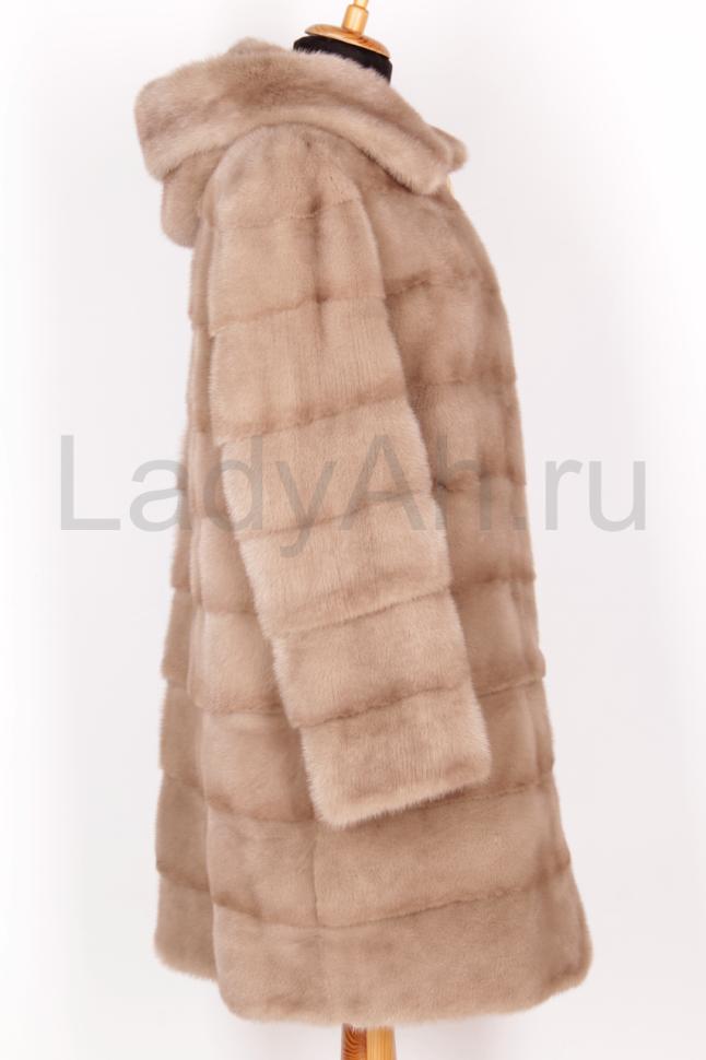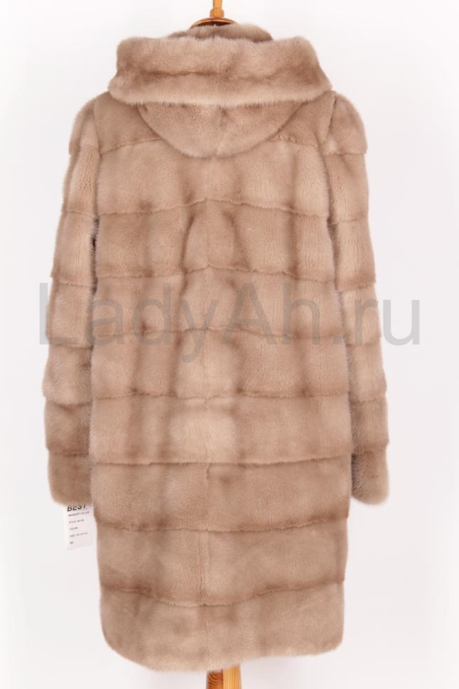 Новая норковая шуба с капюшоном, поперечка, цвет бежевый.