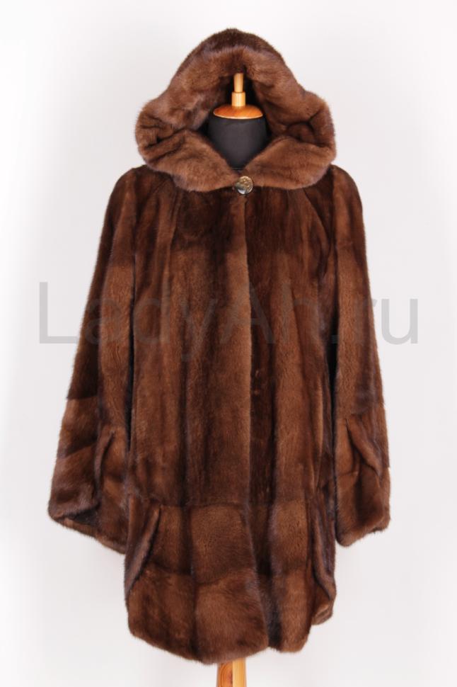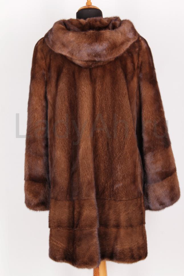 Красивая, универсальная, функциональная норковая шубка с капюшоном, красивого цвета орех - очень живой и теплый оттенок. На солнце переливается, в тени выглядит глубоко и благородно.
