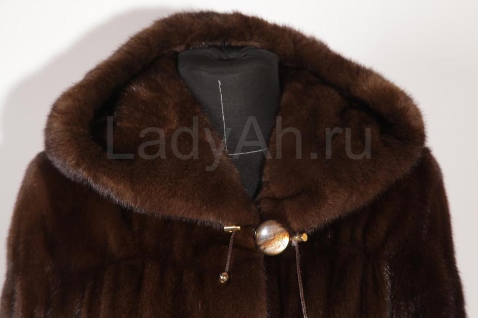 Чудесная дизайнерская вещица с капюшоном с отворотом, по талии и на рукавах кулиски. Мех ослепляет блеском, притягивает благородством шоколадно - орехового оттенка. Дорогая, изысканная простота- это описание наиболее точно охарактеризует данное меховое изделие.